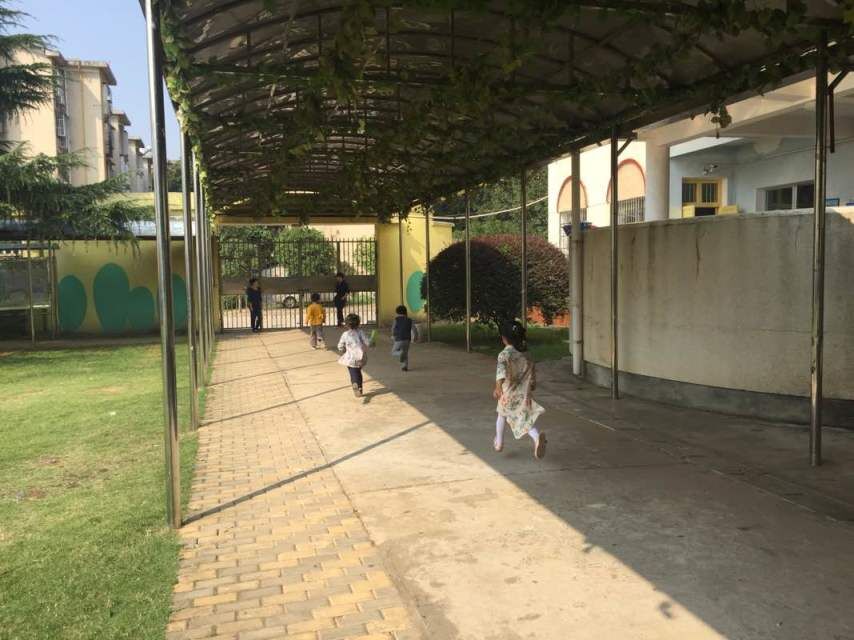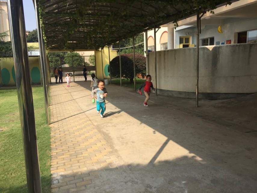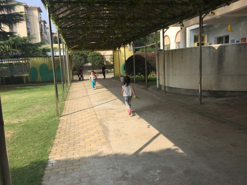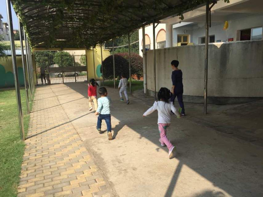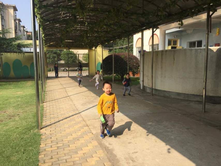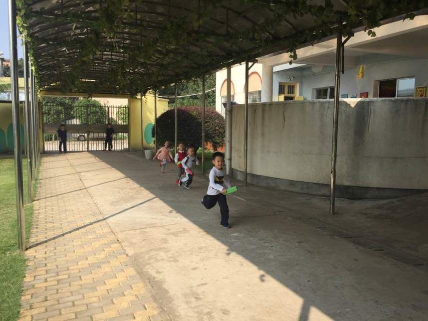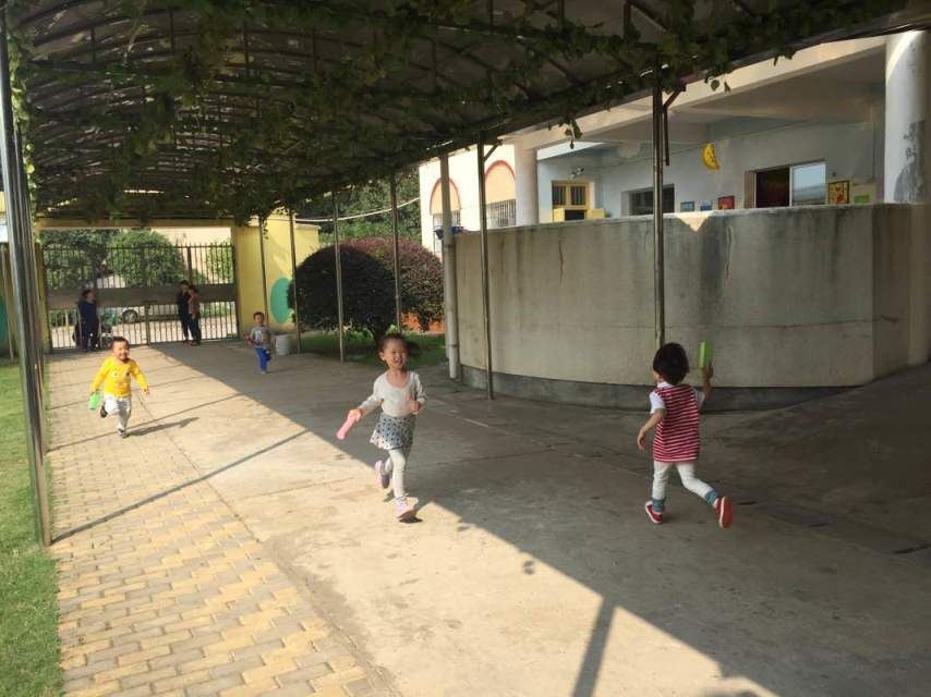 摩拳擦掌,跃跃欲试,站在第一位小朋友手上拿着的使我们平时玩的长积木,在一声哨响以后,各队一号运动员手握“接力棒”,冲出起跑线,奋力的奔跑在跑道上,跑到铁门口敲一下门再转回来把手中“接力棒”给下一个小朋友,在游戏过程中孩子们挥洒了汗水,收获了快乐!
