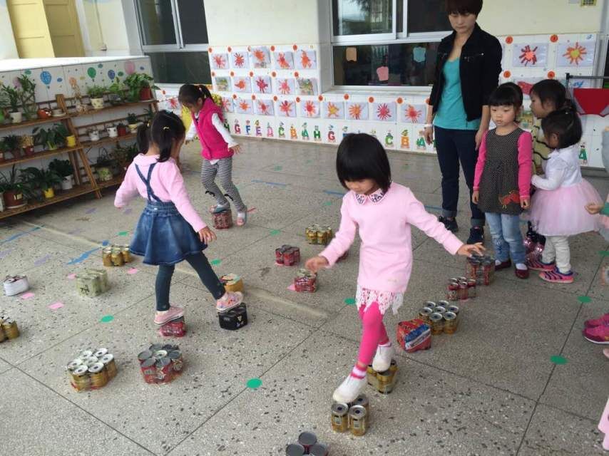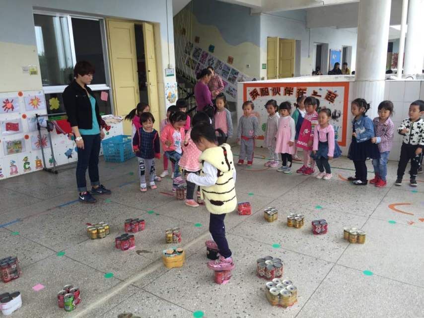 经过几天的准备,到了周三的时候,我们举行了每个班级的运动区区角互换活动,我们去小二班玩他们的运动区——梅花桩。小朋友们可喜欢玩了,非常有秩序的一个接着一个的在上面走,遇到困难过不去时自己也会开动脑筋想办法让自己过去,而还没有轮到的小朋友们便在后方为前面的小朋友们加油,鼓气!活动进行得非常成功,快乐!