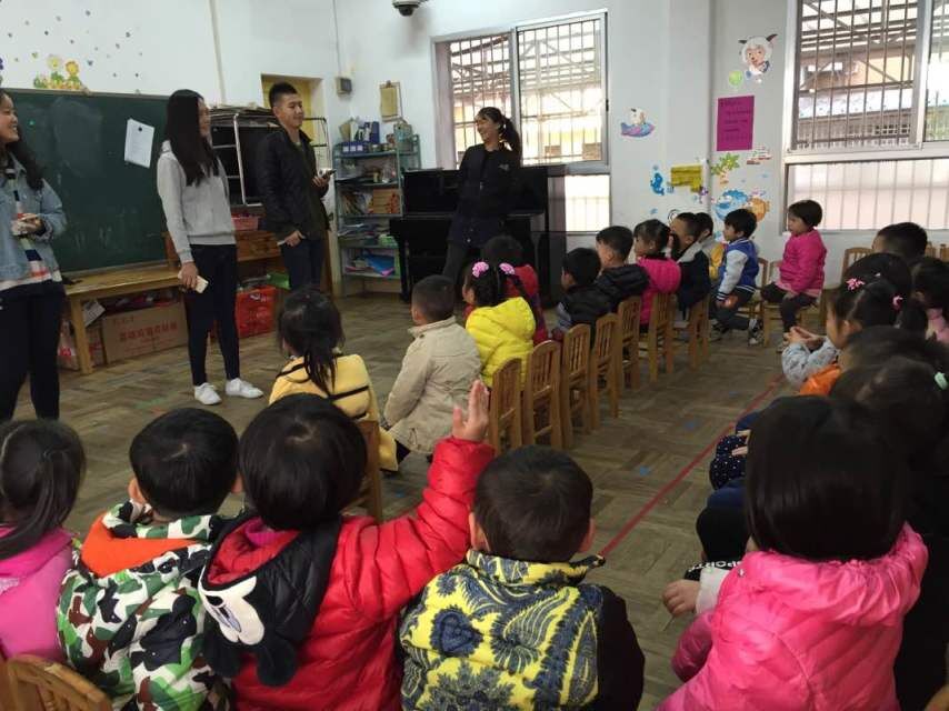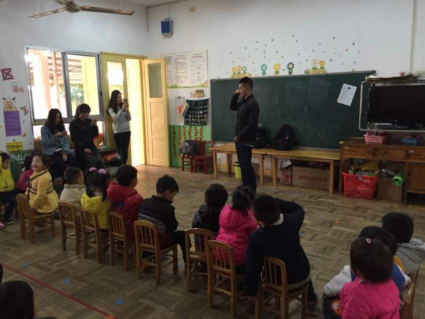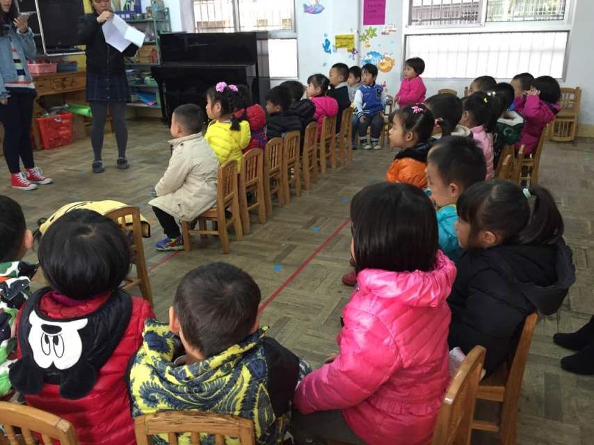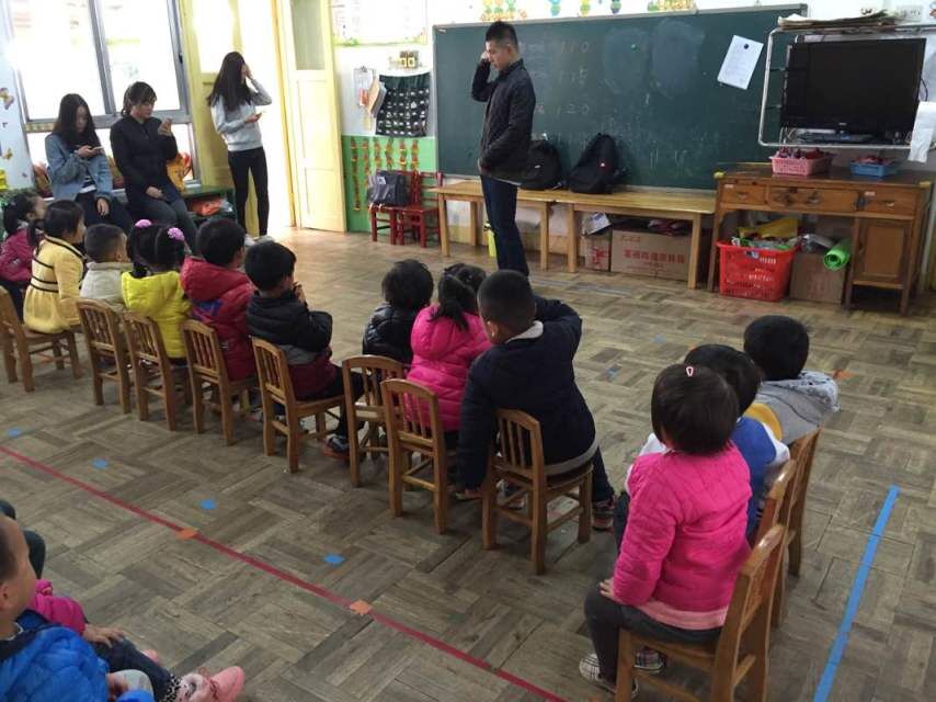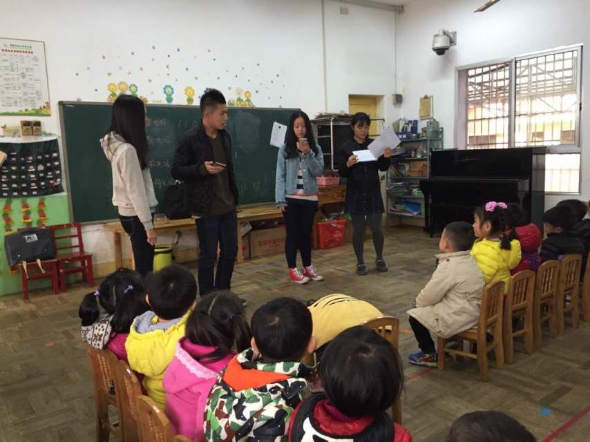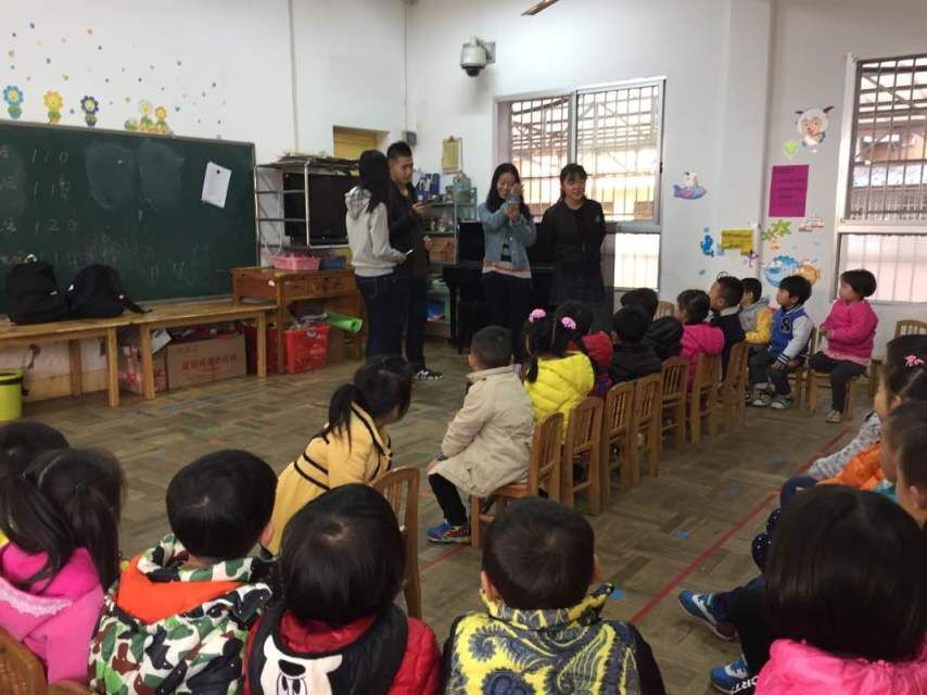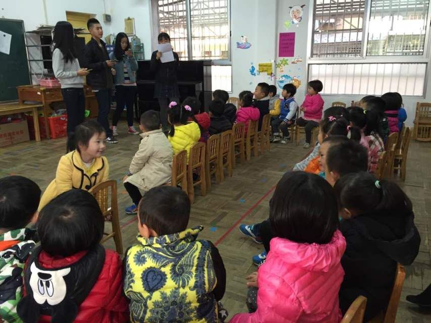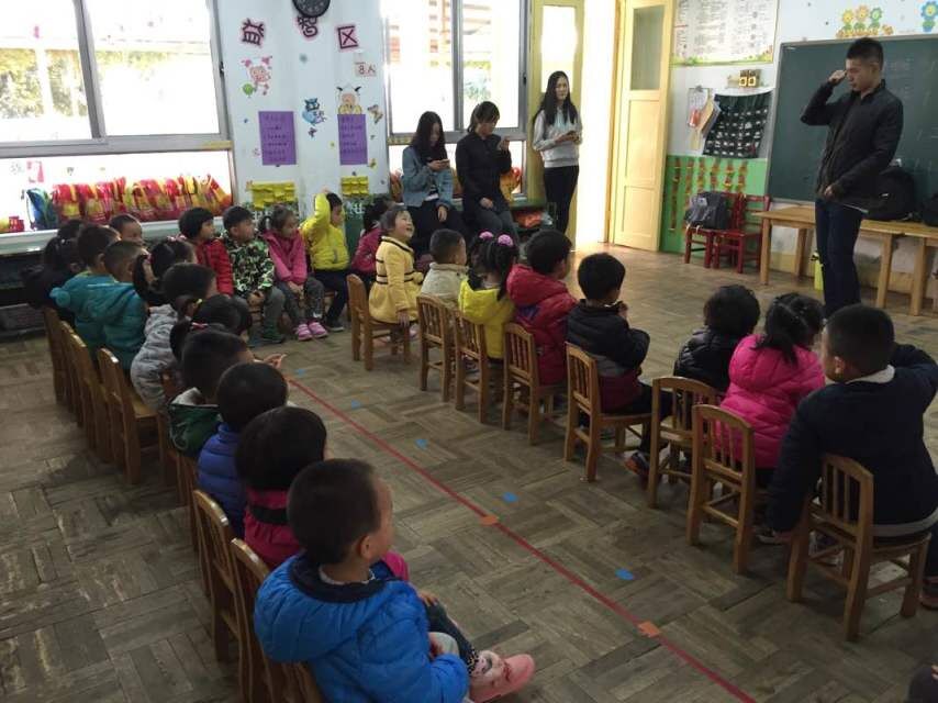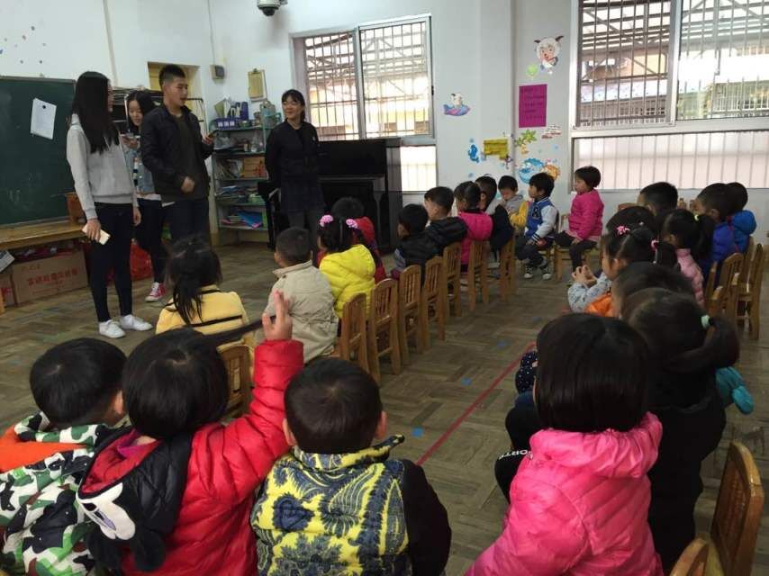 大学生哥哥姐姐进来之后先做了一个自我介绍,然后直接带着小朋友一起进入今天活动的主题—保护大自然!哥哥姐姐们给我们讲了关于大自然的故事还给我们唱了一首保护树木的歌曲,小朋友们听得可认真了,让我们一起来看看吧!