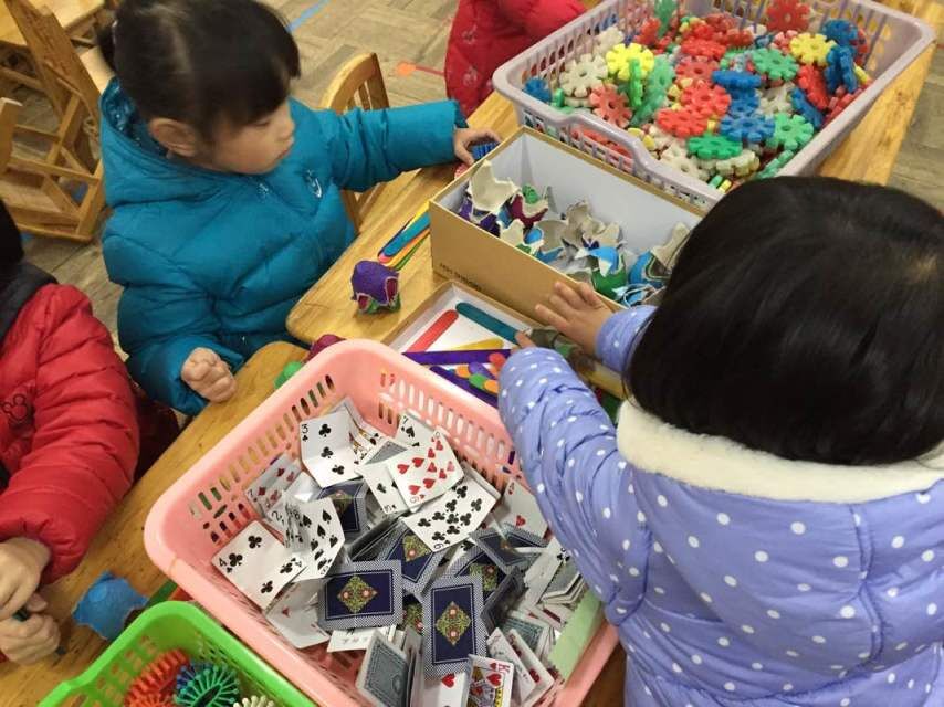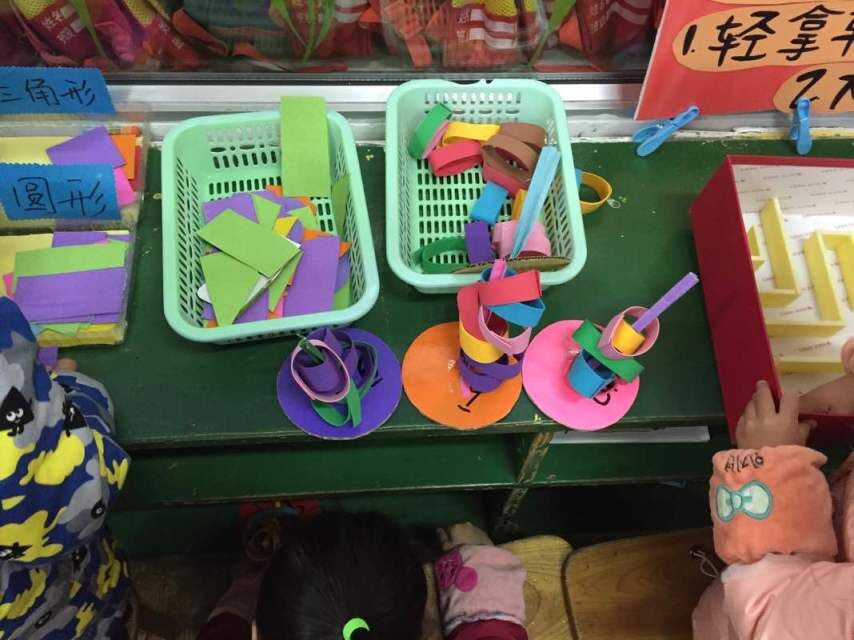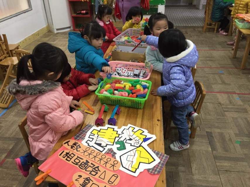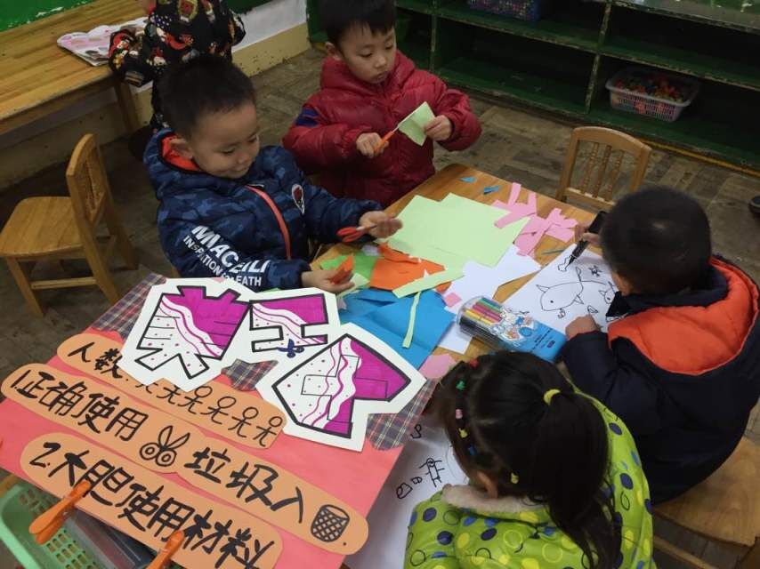 教师们在创设区角投放材料时都是挖掘生活中的材料, 利用有限的空间如墙面、地面、桌面等,把活动室划分成了一个个自由的游戏空间,孩子们可以自由选择、自由游戏。随着活动的开展和幼儿发展的需要,我们不断改变这些设施,使每一个空间里的活动具有多样性,材料具有丰富性,不断给孩子新的刺激,使有限的空间发挥出最大的环境教育作用。各班教师根据大、中、小不同年龄段幼儿的特点,用巧手建起了灵活多变的游戏材料,根据幼儿的兴趣投放材料,提供层次性与多样性的活动材料,满足不同幼儿发展需要。还充分利用身边的各种自然物与废旧物品,鼓励幼儿积极参与,加强幼儿的环保意识。