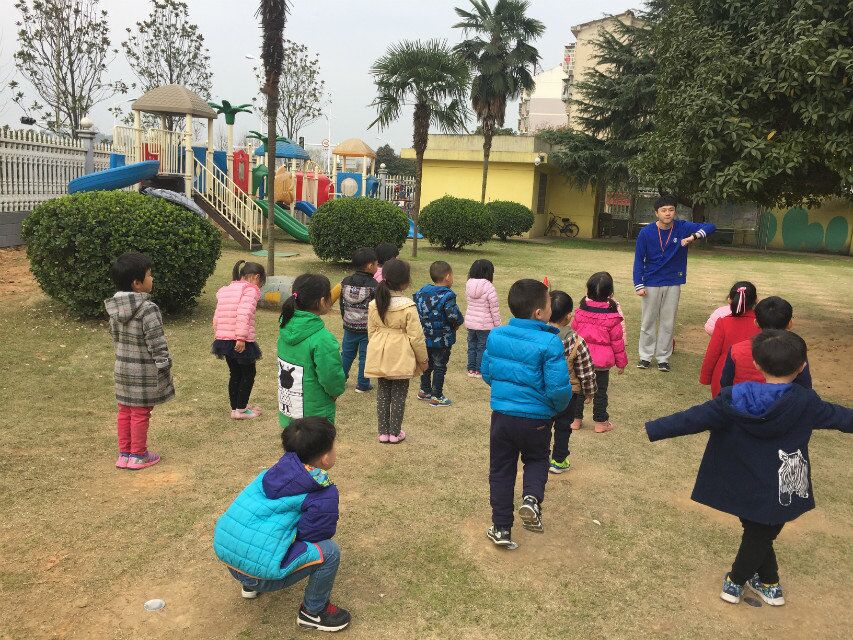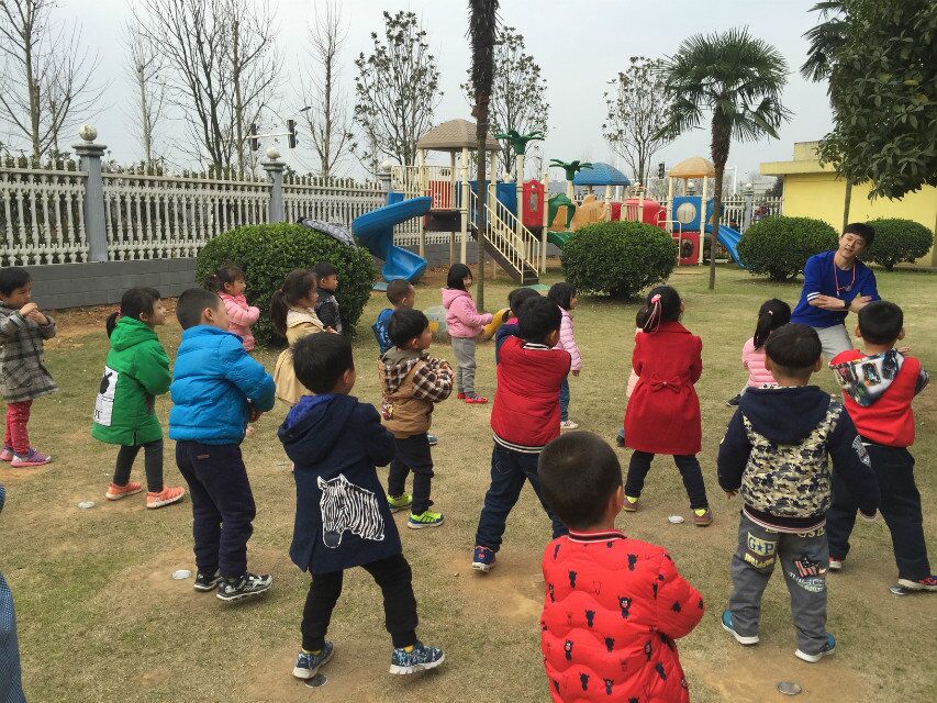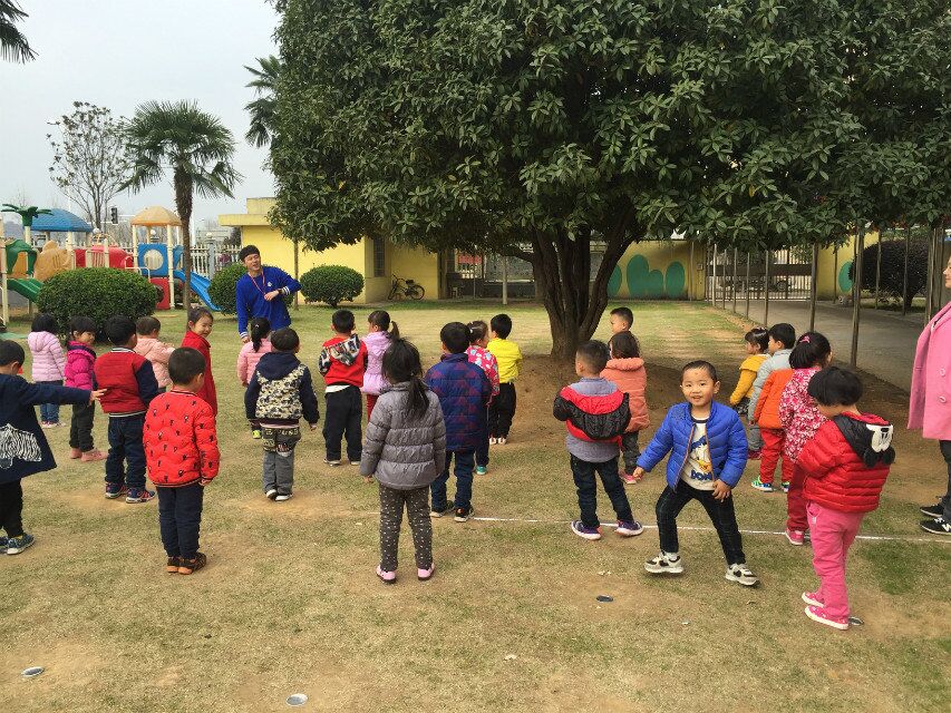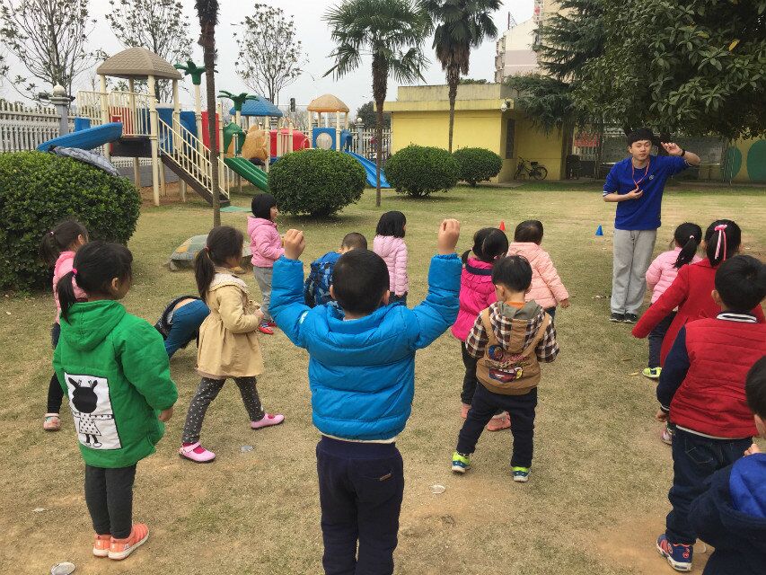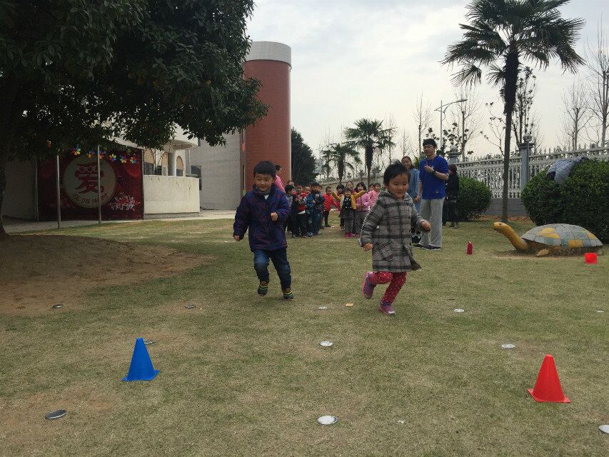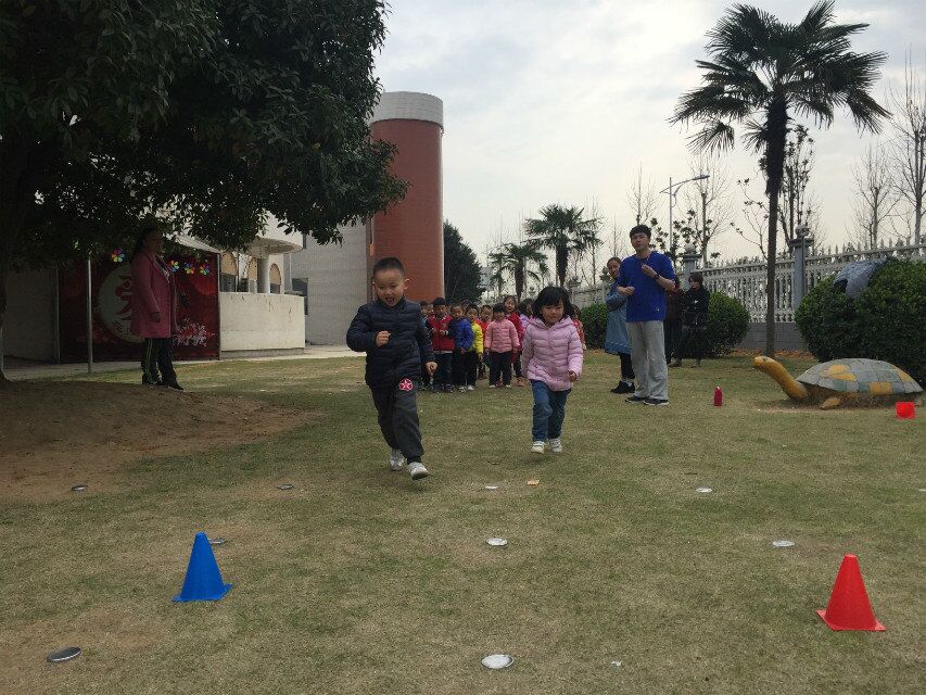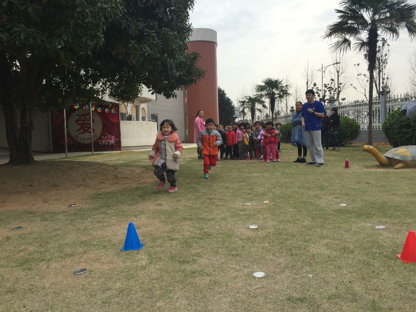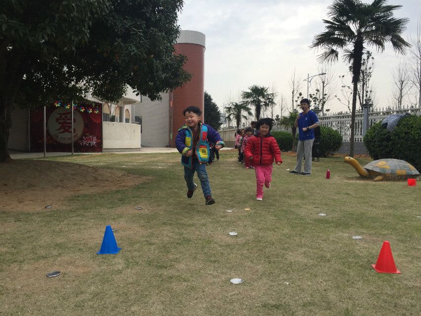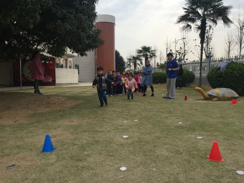 这个学期我们换了猴子老师给我们上体能课,瞧!今天正带着我们小朋友们玩绕障碍跑的游戏呢!