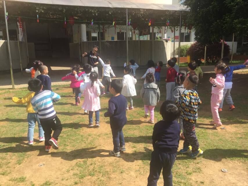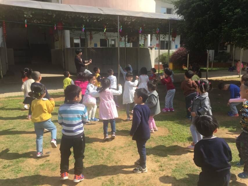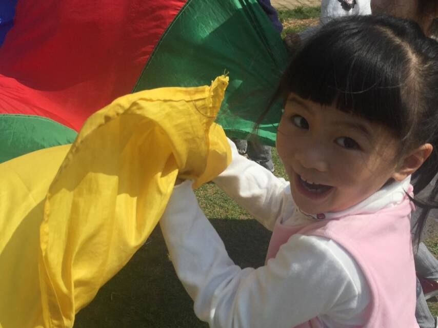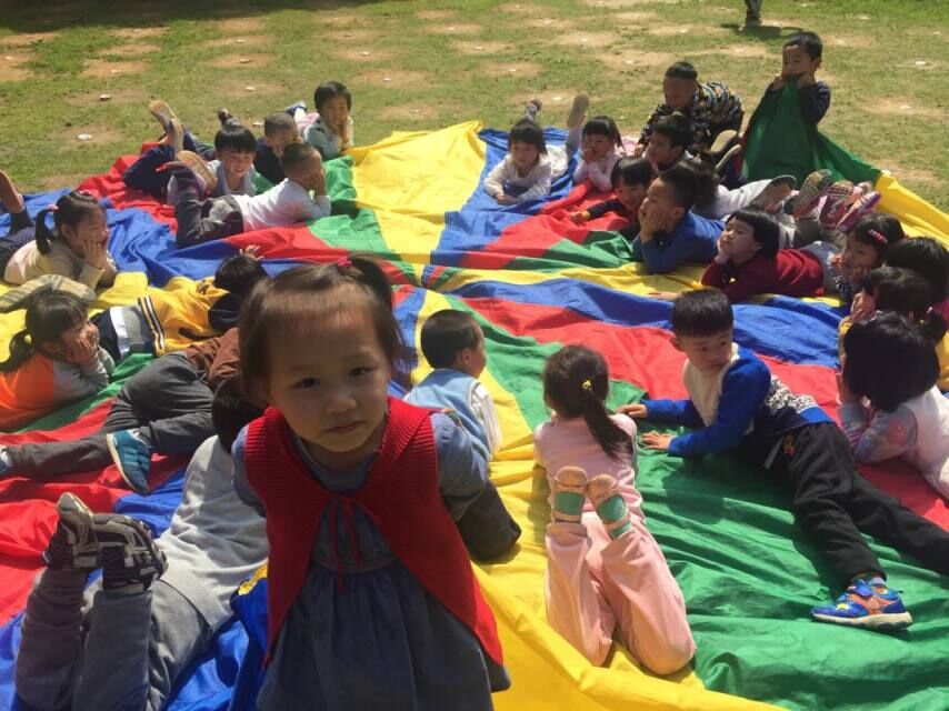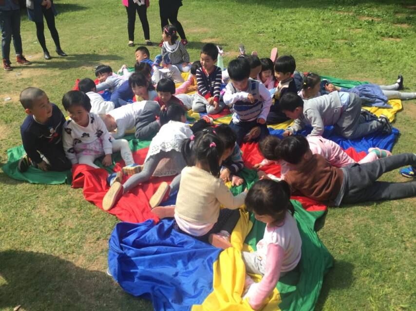 孩子们和老师一起围着太阳伞转呀转,一起拉着太阳伞转转转,拉着太阳伞举起来,好开心啊!开始时教师引导孩子们观察太阳伞的颜色;在教师出示的颜色上爬一爬,然后让孩子们玩游戏《海浪船》,引导小朋友分散站在太阳伞外面,拉起太阳伞用力上下抖动伞面,模拟海浪翻腾的情景。并启发孩子们根据“起风了”“风大了”“风停了”等音乐指令抖动太阳伞;组织幼儿放松运动:风停了,宝宝围着太阳伞跳舞;宝宝拉着太阳伞跑出场地结束活动。在活动中孩子们学习的激情更好了,也学习到尝试跟随音乐抖动太阳伞,感受太阳伞的色彩及玩太阳伞的乐趣了。一声令下,赶紧把太阳伞按在地上,做成一个蒙古包,不要让里面的空气逃出去……玩累了,孩子们就躺在太阳伞上休息。
