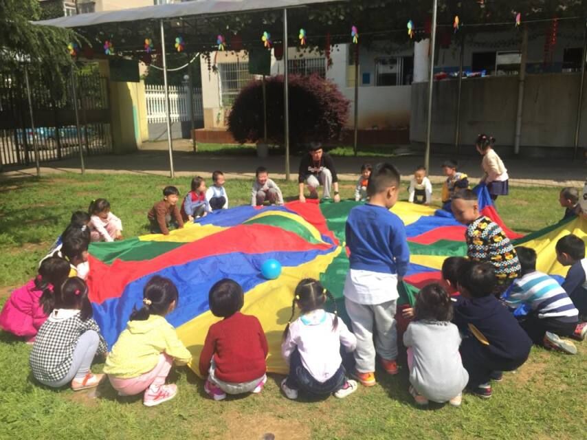 户外活动的时候,小朋友可喜欢玩太阳伞啦,为了让孩子爱上户外活动,体验活动带来的乐趣,教师带领小朋友一起去户外玩太阳伞。