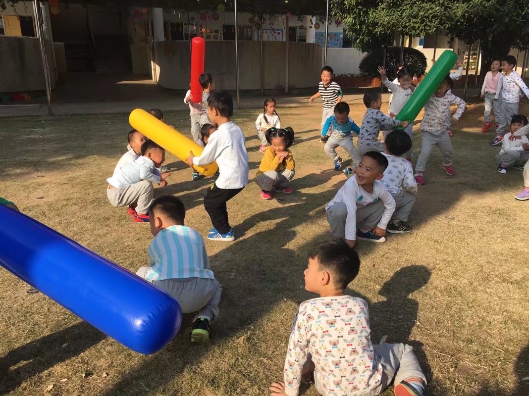 这周猴子老师来给我们上了一节有趣的体能课,有我们感兴趣的充气棒,虽然还不知道是怎么玩的,但是想想都觉得很有趣。猴子老师带着我们做了一个律动就为我们讲解玩法,原来充气棒是用来打地鼠的呀!选几个小朋友当农夫,其他的就都是地鼠宝宝啦!每个地鼠都有自己洞,看到农夫来了要赶紧躲起来。游戏开始了,地鼠们都太激动了,农夫只有四个,怎么打都忙不过来,地鼠们真的太多了,反应都很快,农夫们要加油啦!