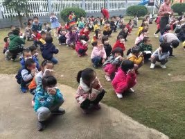 10:00左右,忽然响起紧急的警报声,各班教师迅速按紧急预案的疏散线路带领幼儿拿起湿毛巾,捂住口鼻,弯腰小步快走,分两道楼梯迅速且有序下楼,经过2分钟的时间全园幼儿被疏散到安全地带。