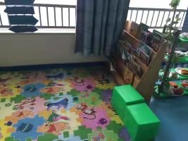 还有我们的阅读区,老师们给我们做了几张小椅子,每次我们都争先恐后的去抢着坐。