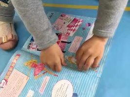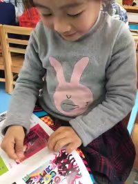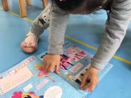 阅读时间到了,几个小朋友一起拿着芭比公主的书坐到椅子上看,翻了几页,发现有一张已经撕烂了一大半。马上拿着书跑到老师那里去,询问解决办法。老师提醒到,在阅读区角里有一个板块告诉了大家解决办法,仔细去找找。