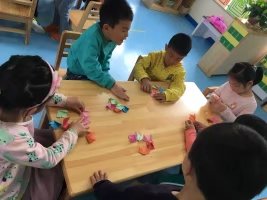 一共只有三步,漂亮的小花就做好啦。我们都拿出折纸跟着老师一起动手制作,原来真的不难呀!
