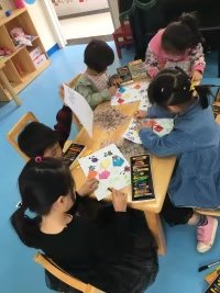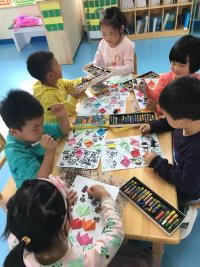 一开始我们都觉得,应该是在白纸上面画上各种颜色的花朵再把周围画上草地就可以了。可是老师告诉我们,今天我们花园里的花要我们自己动手折,我们都觉得那肯定很难,可是老师说很简单。