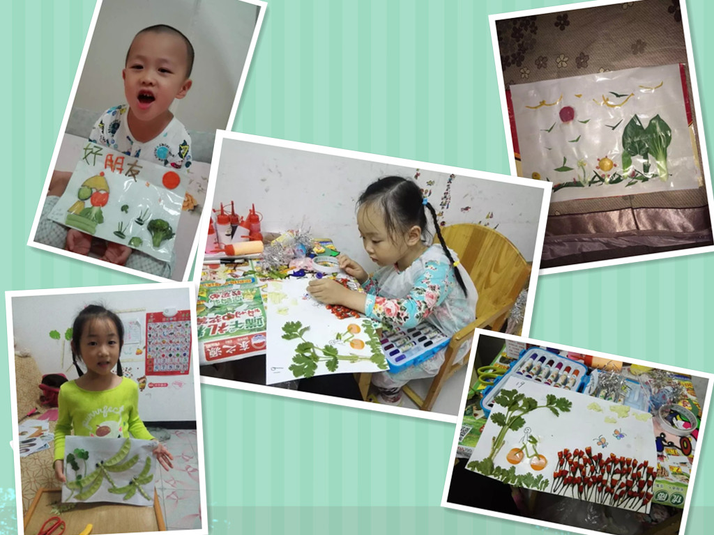 本周我们正在进行《四季蔬菜》的主题活动,因此在本月中旬,我们中二班进行了“亲子蔬菜拼图大赛”,活动是在家里完成,要求爸爸妈妈与孩子一起利用我们生活之中常见的蔬菜动手制作拼图,班主任谢老师一宣布这个消息,大家纷纷积极响应,孩子们在爸爸妈妈的帮助之下,积极动手,出来的作品真的很不错哦!看!有的运用荷兰豆制作了两只“蜻蜓”,有的用辣椒、青菜叶以及胡萝卜制作了一片”玫瑰花园”,还有的用黄瓜与胡萝卜拼了一幅“全家一起看日出”的美景,还有很多优秀的作品,这里我就不罗嗦了,大家直接看作品集锦。