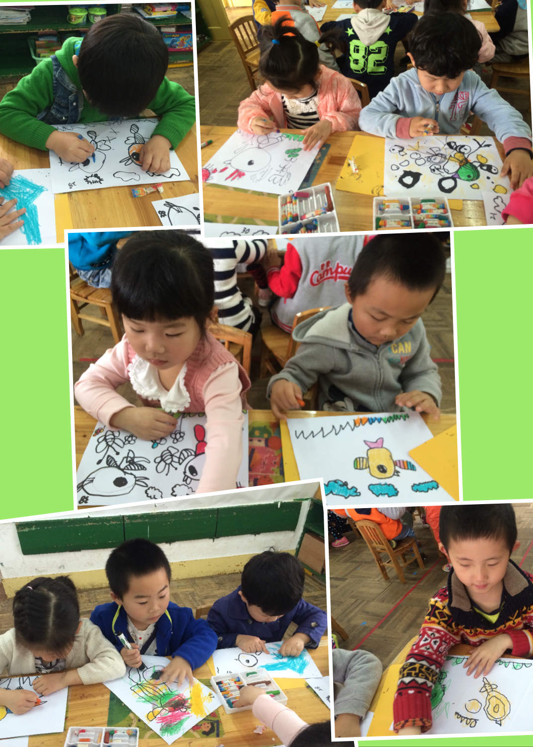 本月主题《鸟儿飞飞》,在老师的引导和鼓励下,孩子们正在大胆夸张地画出头大身体小的鸟儿,并能给鸟儿用各种线条进行装饰,大部分幼儿还能用彩色油画棒涂色来装饰鸟儿。活动中幼儿不仅体验了绘画的乐趣,同时学会了用几何图形拼出小鸟的形象,通过操作观察,能画出不同动态的小鸟,知道了画小鸟的基本步骤。作品展示、欣赏时,孩子们看着一只只美丽的鸟儿,都激动第赞美:“好漂亮啊!好美丽啊!”个个感受到了成功的喜悦。