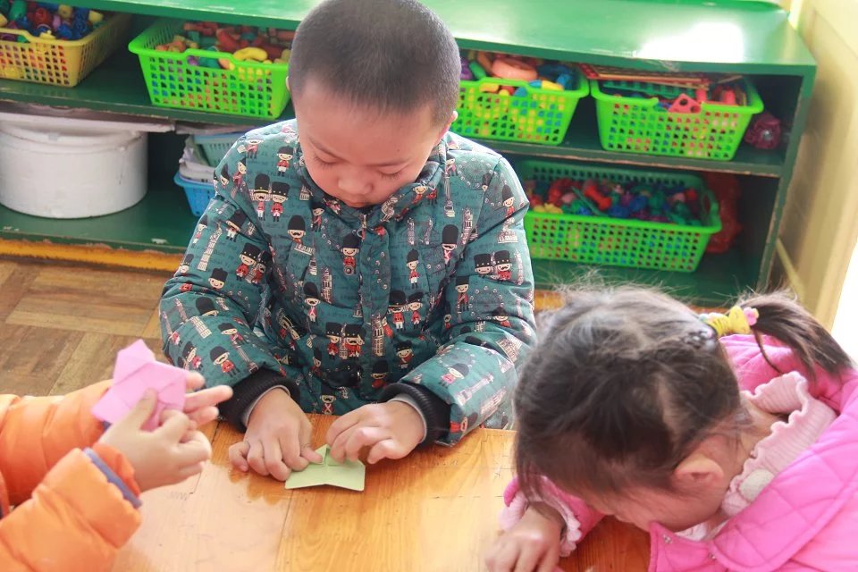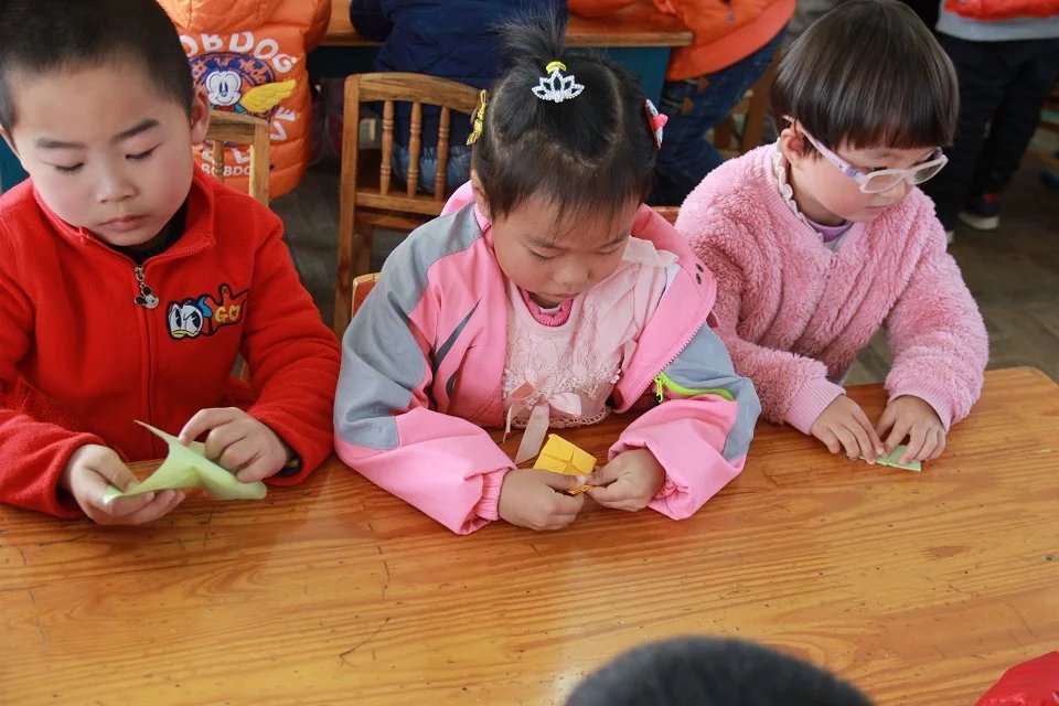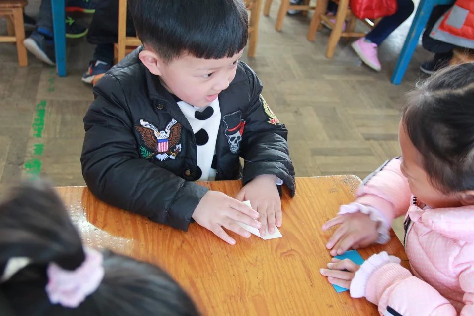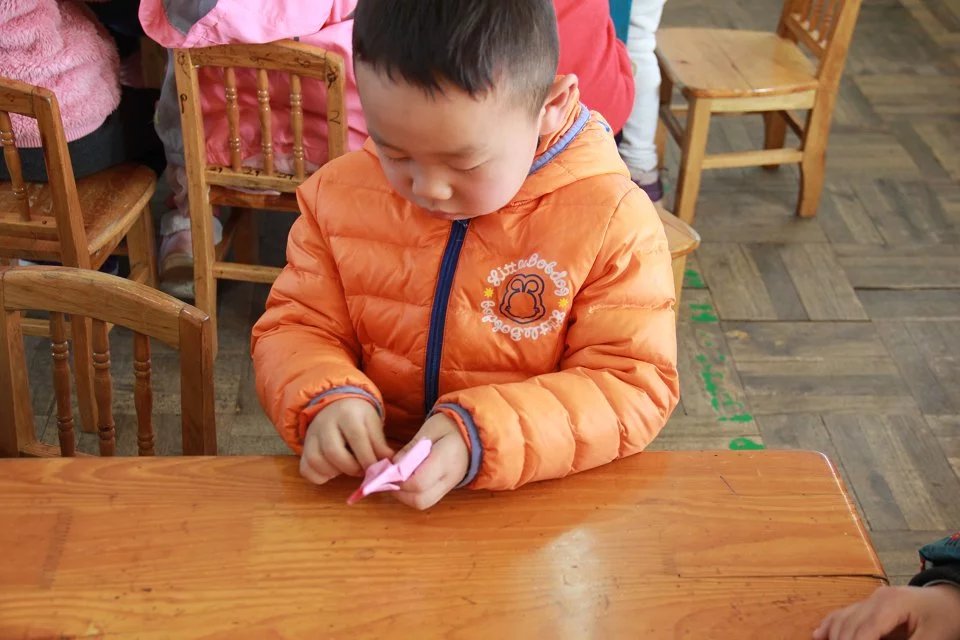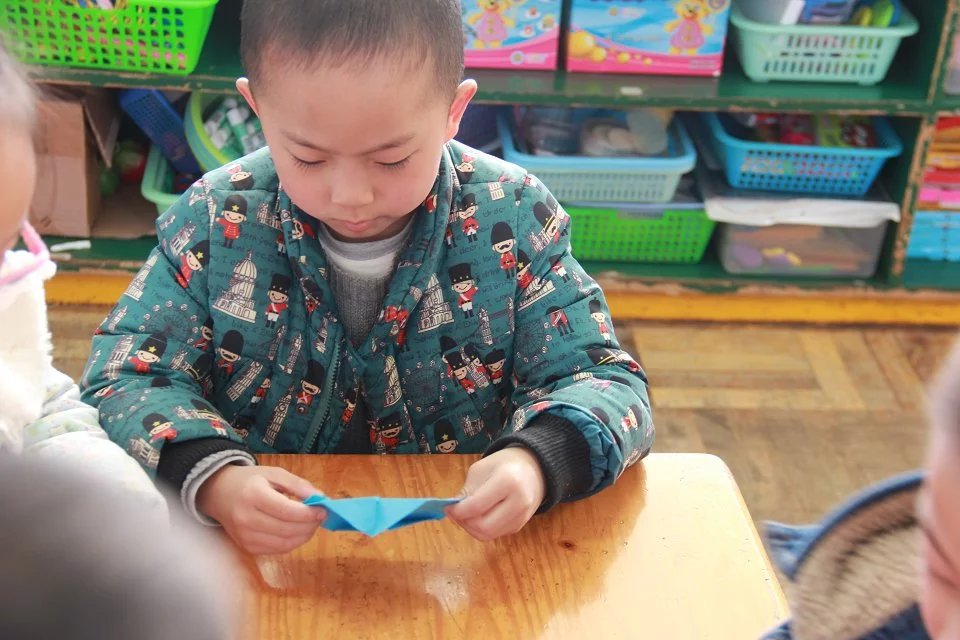 在本次活动中大部分幼儿都能独立完成作品,一小部分幼儿虽然一时无法掌握最后一步,但是在老师引导下也能较好的完成作品。孩子们的认真,孩子们的创意,孩子们的笑容创造了整个活动轻松、快乐的氛围,而这样的氛围更有利于孩子们的创意想象,更有助于孩子们积极的参与活动、出色的完成作品。折纸等类似的手工操作活动重要的并不在于幼儿最后是否完成出色的作品,而是幼儿在操作的过程中是否积极、认真、细心、耐心,操作活动的氛围有助于幼儿养成细心、耐心的做事态度。