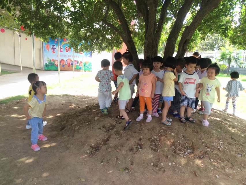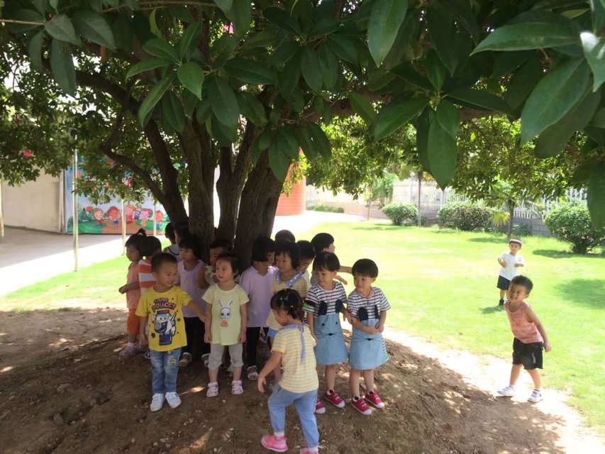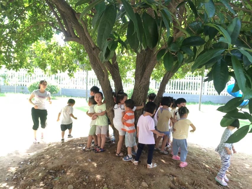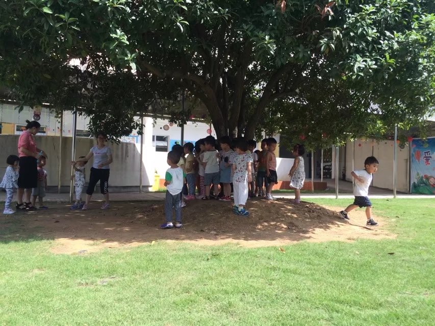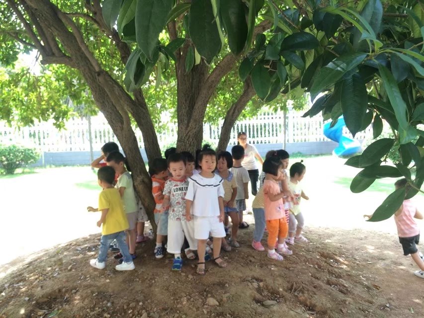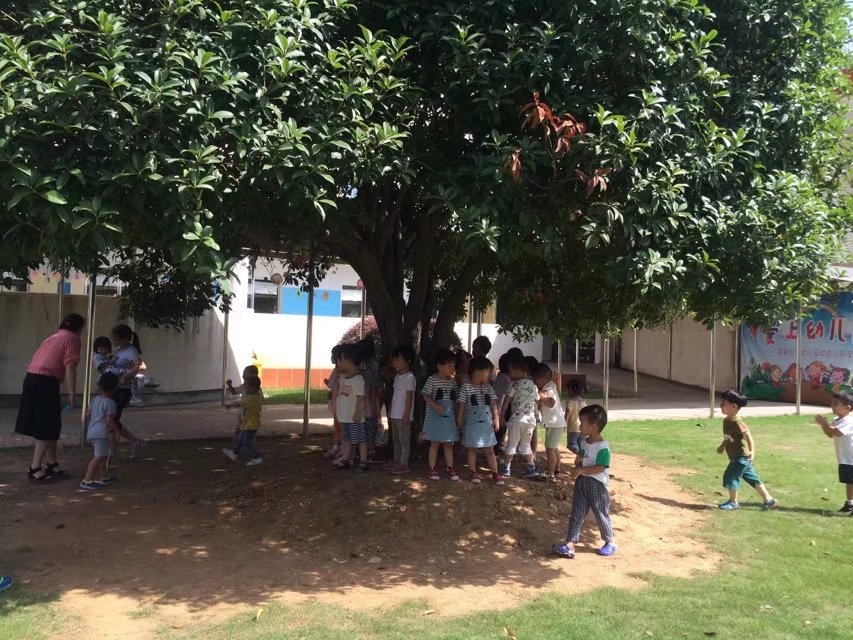 户外活动时间,苹果老师带领宝贝们来到草坪,好玩有趣的“狼和小羊”的游戏在桂花树下拉开序幕。