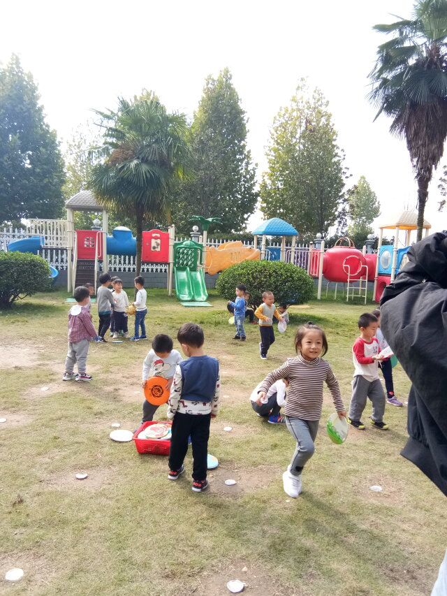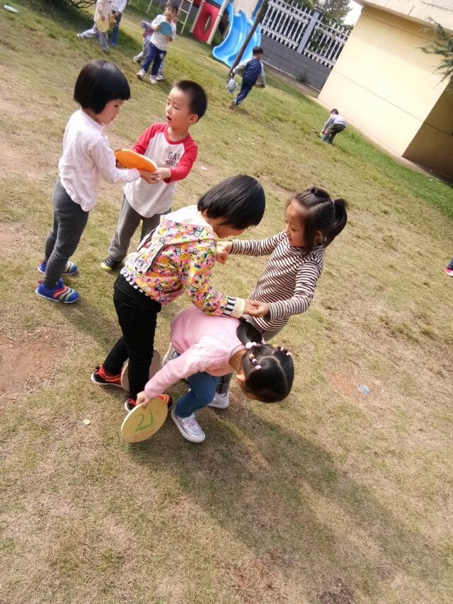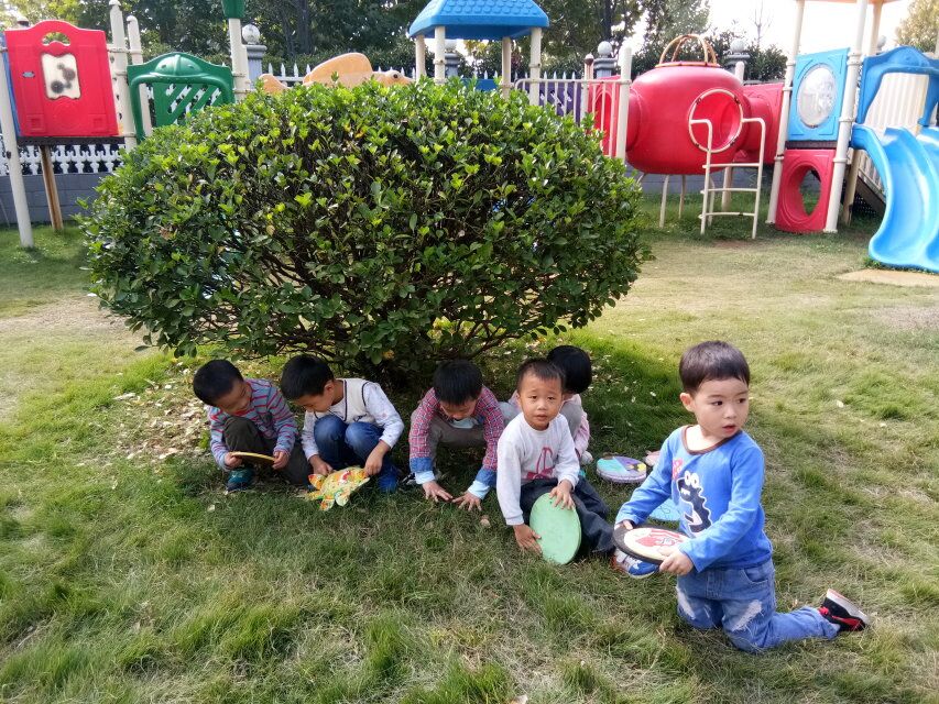 而今天难得出了太阳,草地上都干了,宝贝们练习了好几天,正想让宝贝们放松一下,出去好好玩一玩。于是老师带着宝贝们去草地上玩扔飞盘,一出来见到阳光,宝贝们都很兴奋,等不及的想要开始游戏了。有的小朋友在玩扔飞盘;有的小朋友在玩小鱼小鱼快快游;有的小朋友在玩老鹰捉小鸡;还有的小朋友闻到了桂花香,正拿着飞盘当碟子,在捡桂花呢!还有一些小朋友躲在小树下,老师过去一问,才知道原来他们在吸引怪兽呢!宝贝们的童言趣语,自在飞扬的样子,也让老师们感到心情愉悦了!