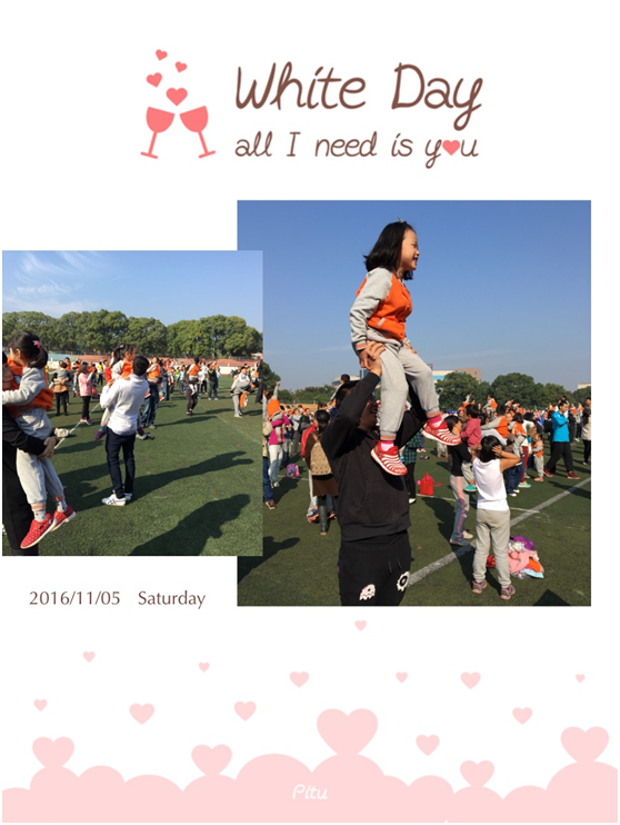 为了丰富幼儿的生活,提高幼儿参与体育活动的兴趣,发展幼儿动作的协调性和灵活性,使幼儿身体得到锻炼、体质得到增强,同时,加强家长与幼儿之间的感情交流,体验合作与亲子之间的乐趣,随着一首运动员进行曲的奏响,拉开了此次亲子运动会的序幕!《我运动》《我健康》 《我快乐》 !我班宝贝们手拿美丽的花环,喊着嘹亮口号,迈着整齐的步伐走进了运动会,大三 大三 雄霸一方 大三 大三 威震四方!