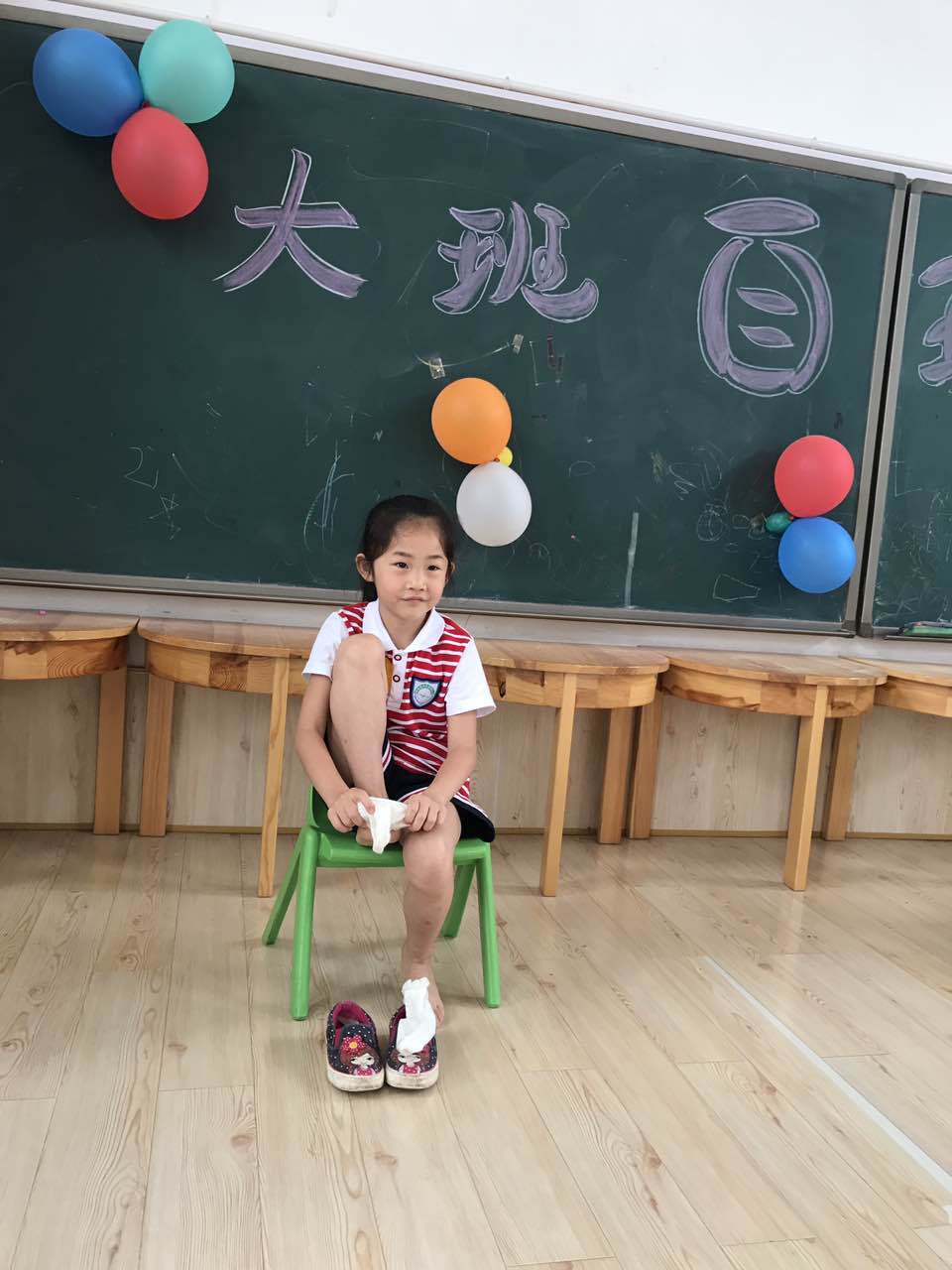 在风轻云淡、鸟语花香的夏日里,今天我们大班年纪组举行了“我能行,我最棒”自理能力竞赛。