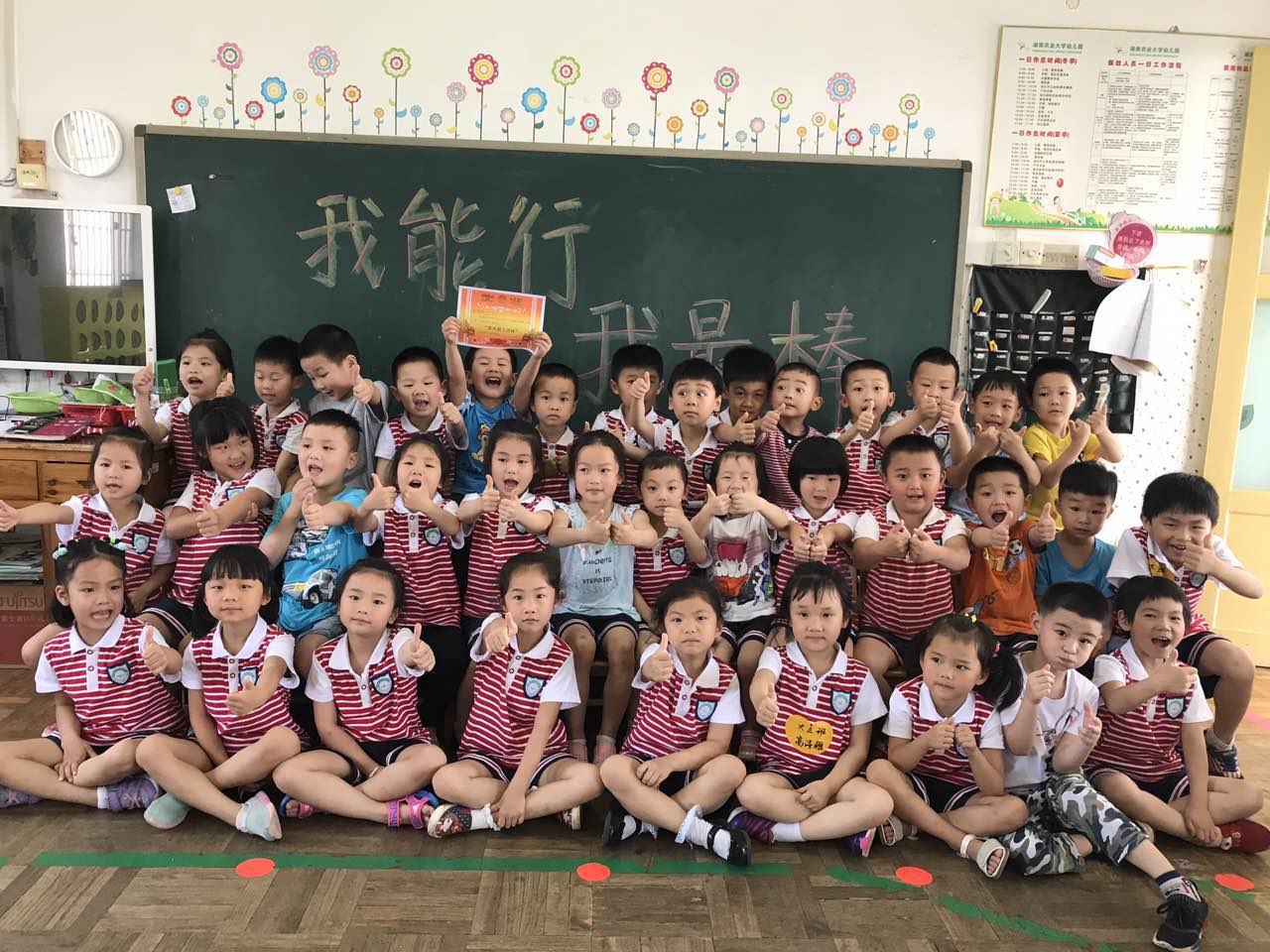 通过这样的活动,即锻炼了孩子们的基本生活技能,又增强孩子们的自信和集体荣誉,最后我班宝贝在比赛中获得年纪组最佳“旋风超人”团体奖噢!