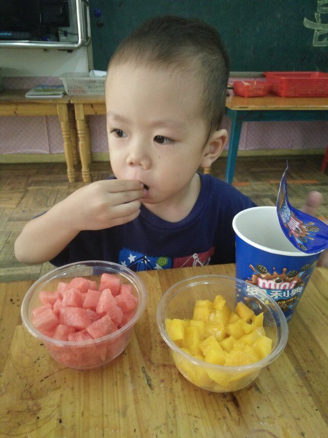 在美妙的音乐中,小朋友开心的吃着他们喜欢吃的食物。我们一起来看看他们可爱的样子吧