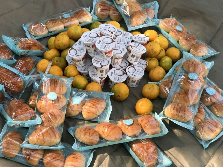在园领导的细心组织下,我们领取了园内给我们发放的食物,铺上家长贡献的爱心地垫,由老师给我们分发食物,我们便开始品尝美味的午餐啦!