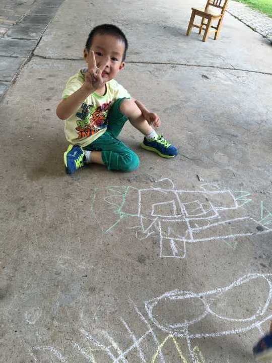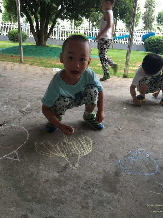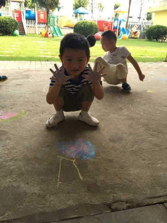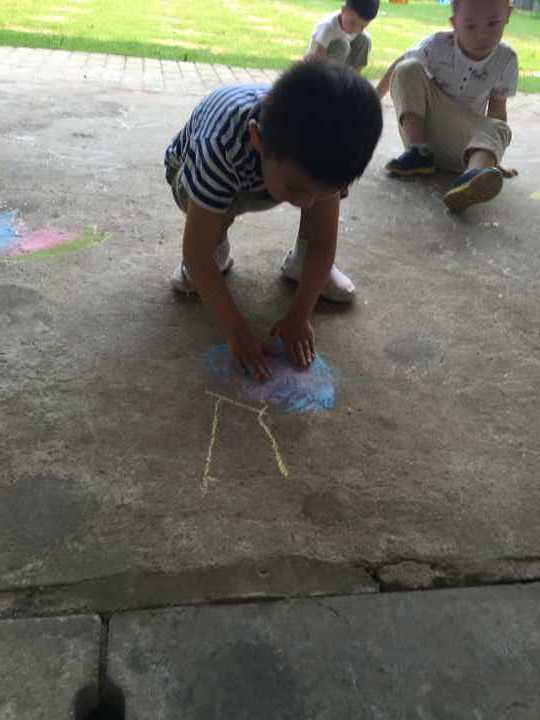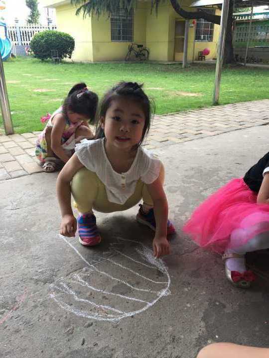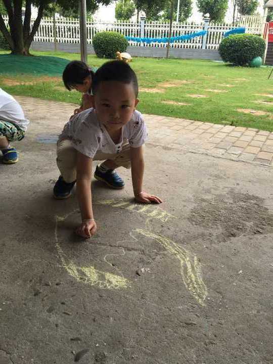 今天,老师带着中三班的小朋友们来到户外的水泥地,