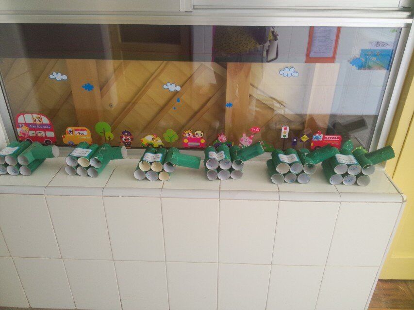 、制作飞机,分为四节课程,两节课均为纸筒、木头夹子、冰棒棍染色,另外两节则分类为制作坦克和制作飞机,每次的目标都非常明确,孩子们都积极参与其中,十分享受,每个人都参与到操作中,制作坦克我们是根据孩子的不同发展和实际情况,进行了合理的分配,进行组别之间相互合作,一组幼儿为一个作品,孩子们你帮我我帮你,体验了合作的愉快,每组做完我们进行风采拍照,孩子们也是极具表现力,很有成就感!