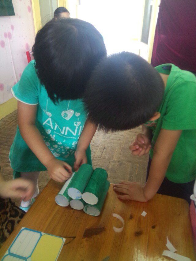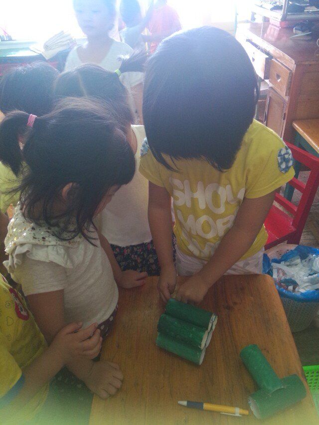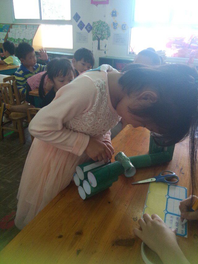 收集物品在前三天我们班已全部收集完毕,保证到了充足的资源,这是最好的操作前提,有了丰富的物资,我们开始了有趣的操作活动,活动分为三大环节:物品染色、制作坦克