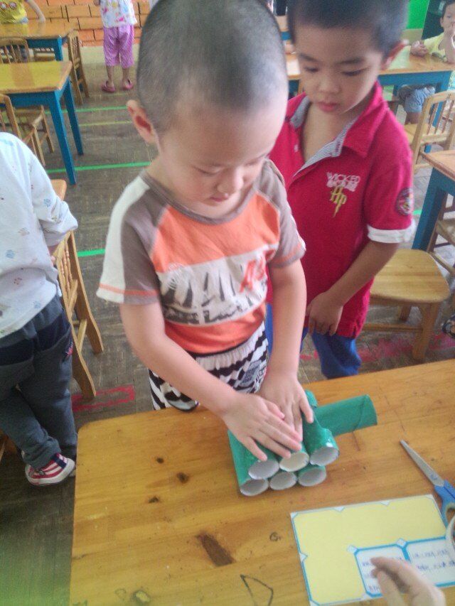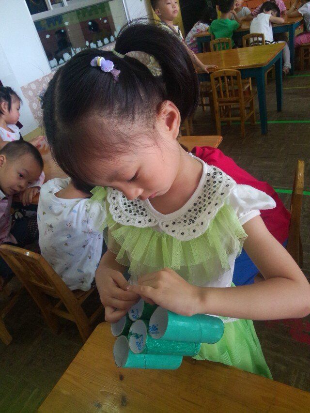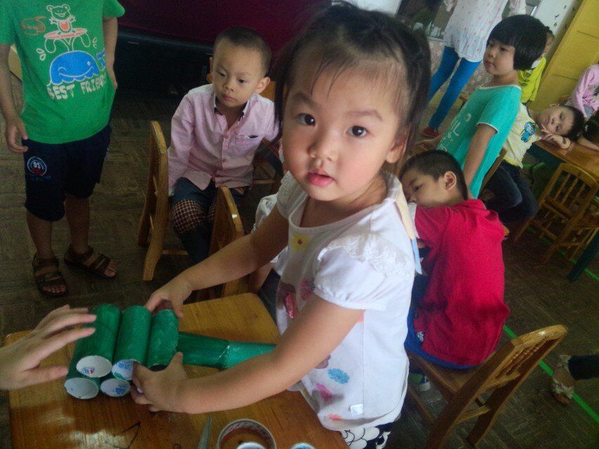 制作飞机,相对坦克来说容易一些,我们进行了个人操作,宝贝们听清楚要求后很快就完成了任务,拿着小飞机飞来飞去,气氛也是十分融洽。