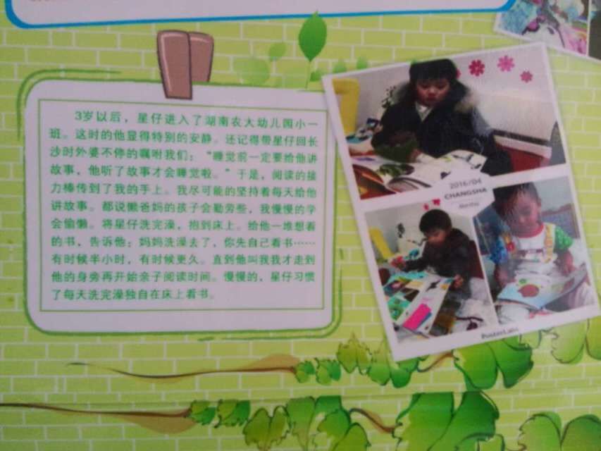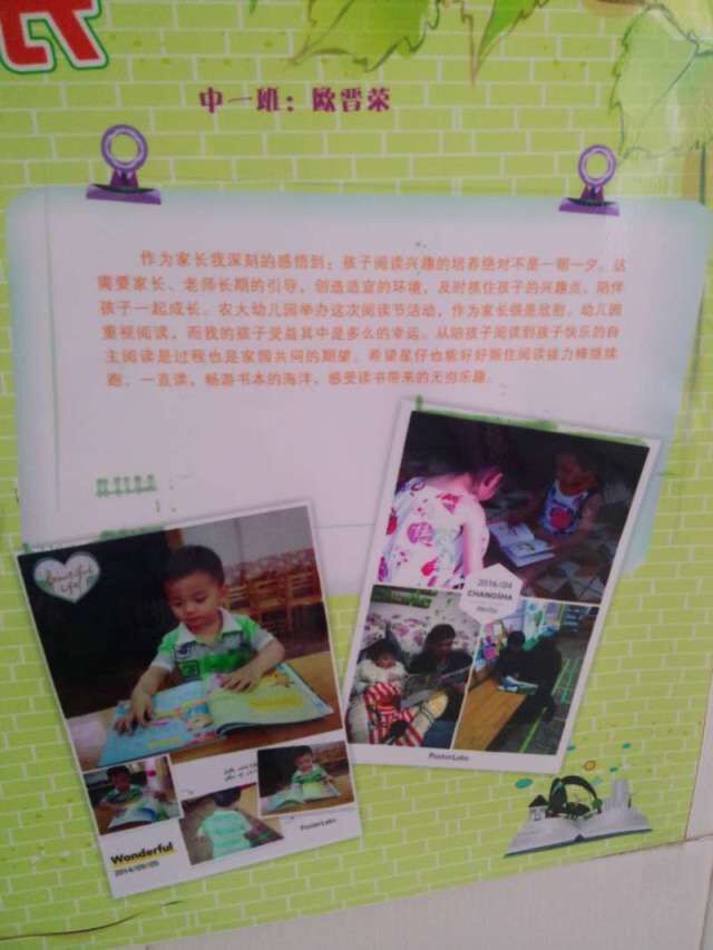 本次上交的海报可谓是惊喜连连,家长们的效率是越来越高,不仅时间快速,而且质量也是杠杠滴,选取了非常有意义的照片,并配上了非常用心的文字,有的家庭还出动了全家一起想办法,这种氛围十分的浓厚,张果言家庭第一个上交,神速让我们惊叹,而且质量非常高,均衡到孩子的各方面,十足赞;欧晋荣妈妈把孩子从小到大的温馨瞬间都记录下来,配上暖心的文字,十分精致细致,惊叹妈妈的才华,佩服妈妈的心思细腻,一份成果,背后也是家人的积极付出,妈妈几个中午没睡,连续换了好几家打印社才出来的成果;胡琪敏家里也是十分精益求精,觉得一次不够完美,再制作了一张,追求高品质的精神,十分让我们感动,也严于律己,为孩子们做好了榜样;柳煜哲妈妈的思路十分清晰,为孩子做了一个阅读轴线,非常棒;李斫清家里也是把宝贝从小到大的阅读记录都进行了展示,非常棒。太多太多,一次次给我们惊喜,也让我们更加近距离的感受了家长们的才能。每一张海报都有他们的特色之处,让我们每每欣赏时,都心生幸福,这种快乐是可爱的中一家人们给我们带来的,万分感谢,每一次的活动都让我们也见证了一次次的惊喜。海报一张一张展示出来,我们进行了简单的装饰,温情氛围又上升了不少,走在海报长廊上,感受的都是浓浓的书香情。