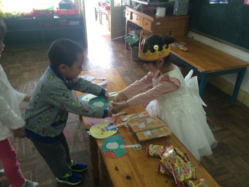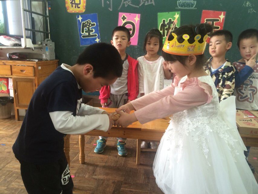 瑶瑶宝贝今天迎来了自己五岁的生日,小宝贝许久前就开心期待着:“老师,下周一就是我的生日了哦!我给大家准备了好多小礼物,好吃的披萨和蛋糕,还和妈妈一起细心准备了礼物,那天我还会穿漂亮的公主裙,我实在忍不住告诉你了!老师,你千万不要告诉别人哦!妈妈说了要有惊喜!”样子十分可爱,十足一个小天使,这天终于到来,宝贝妈妈不辞辛苦,在下午宝贝起床时候,给大家送来了热腾腾的披萨和贴心礼物,只为了让大家吃的开心,甜甜的香蕉味披萨,小宝贝们都十分喜爱,宝贝妈妈还给宝贝准备了小蛋糕,为宝贝许愿吹蜡烛,小伙伴们都吃的十分开心,礼物选取,也是别有用心,每人一把可爱的小扇子、小小文具盒和美味小点心,都是十分为宝贝考虑的,感恩细心的家人,纷发礼物,宝贝们也是送上了自己的感恩心意,这个生日,瑶瑶宝贝在老师和伙伴们的陪伴下很开心!