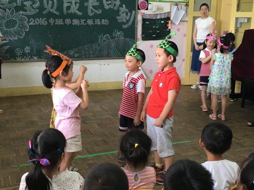 时间像飞鸟,滴滴答答向前跑,转眼一个学期的工作又接近了尾声,为了让孩子们提高胆量、增强自信,给家长们看到我们孩子成长中的点滴进步,分享孩子们成长中的点滴快乐,见证他的成长进步,2016年7月8日,我们成功的举办了学期末汇报活动,孩子们大胆上台表演舞蹈、演唱歌曲、动作展示儿歌、情景表演故事等,取得了良好的效果,总结如下: