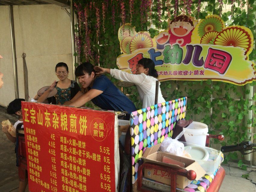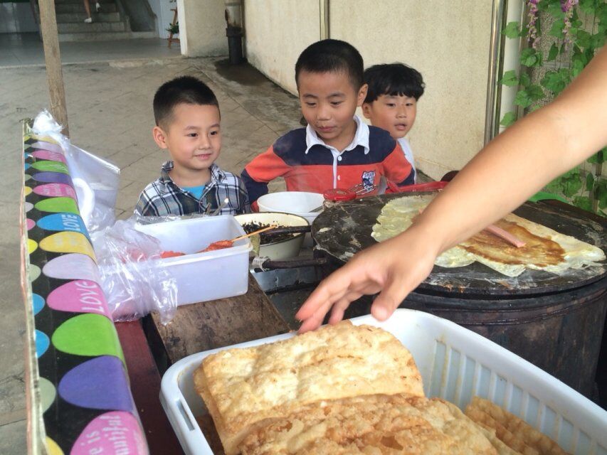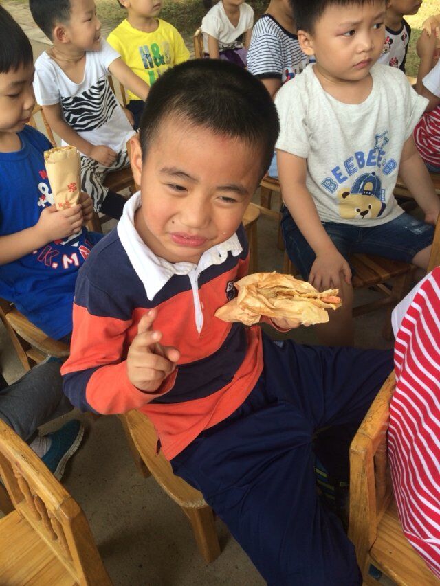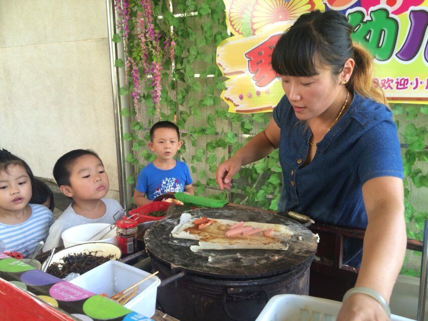 开学初,家人们时常为孩子们分享美味、分享美物,这种关爱之情让大一之家的开学季更加的温情,李秉霖妈妈也是主动的加入无私奉献的队伍,在炎热还未褪去的九月,主动的联系老师,为孩子们制作山东杂粮煎饼果子,孩子们十分的高兴和期待,纷纷等待着这一天,秉霖妈妈无需老师们准备任何东西,自己承包所有的物品,把自己的生意铺位都带过来,放下生意,不计得失,为孩子们无私付出的精神也是十足的可贵。因为他们家也是做此生意,我们在讲解上也为孩子们引入了职业的介绍—手艺人、生意人,培养幼儿对此职业的尊敬之情,明白勤劳致富的概念。