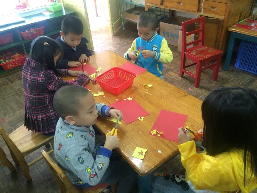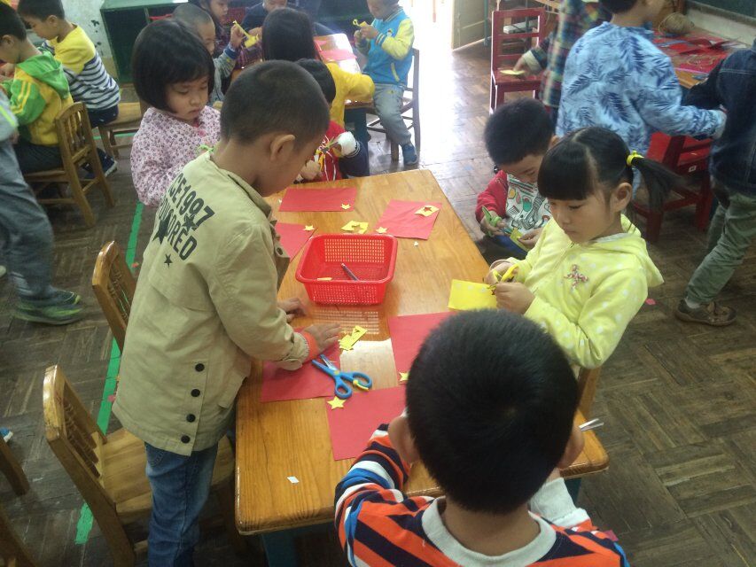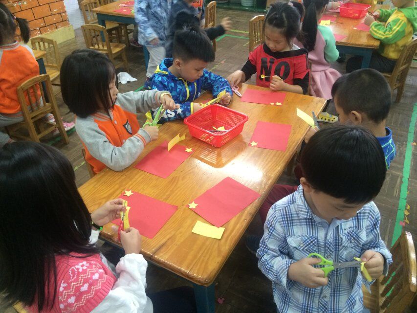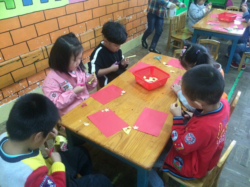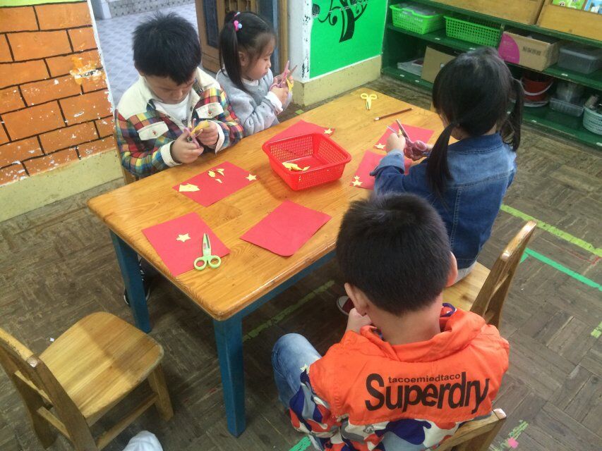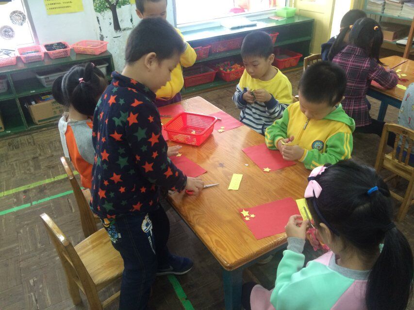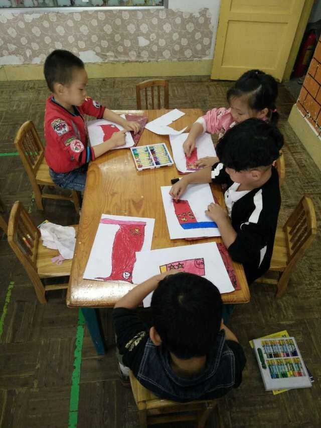 接下来,我们进行了《我爱我的国旗》绘画和剪纸活动,每个人都十分的用心,老师着重讲解了国旗的由来和象征的意义是什么,也重点讲解了五角星的画法。讲解完后,我们便开始了自己的实践操作。教室里鸦雀无声,安静用心创作,十分棒棒哒。