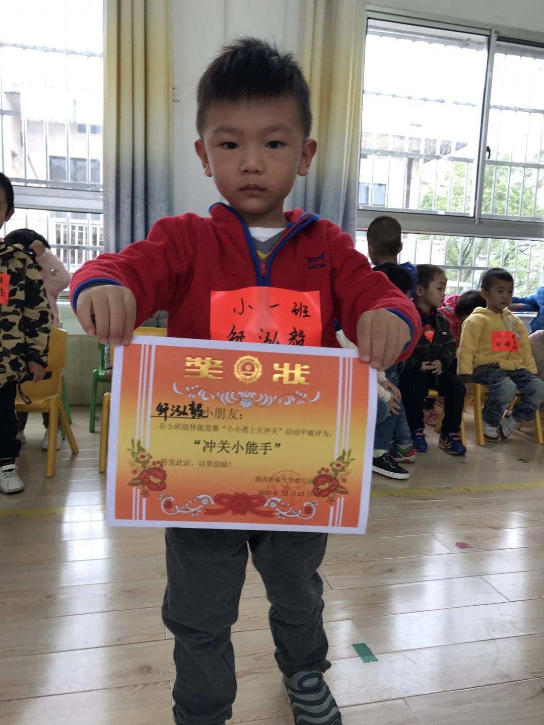 一转眼小班的小朋友已经入园有一个多月啦!我们小班的小朋友10月迎来啦他们的运动节!10月17号是我们小班组比赛的日子,老师们从班上的小朋友里面选出啦10为优秀的小选手!比赛一共有三关!第一关是我们的爬爬爬!第二关是我们的跳圈圈!第三关是我们的投篮!来我们一起为他们加油吧!每个小朋友都是小小勇士!都是小小运动健儿!