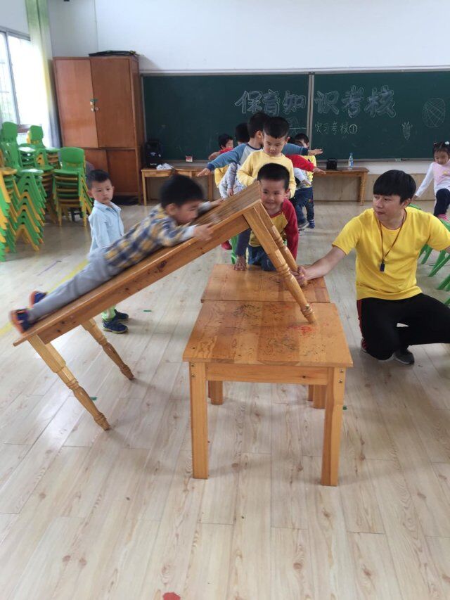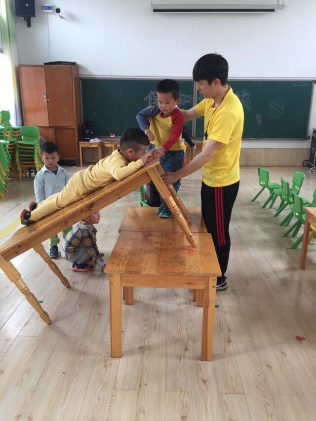 4月20日上了一堂以桌子椅子为主题的体能活动。以游戏贯穿整个活动,有趣、巧妙,游戏从易到难,闯关越来越富有挑战性,满足幼儿的最近发展需要。所用的材料简单易找,场地设置没有太大的要求。在每一关游戏开始时,都跟孩子们讲明白需遵守的游戏规则,从而减少了老师在交代游戏玩法和规则中出现的幼儿不理解需要反复强调。