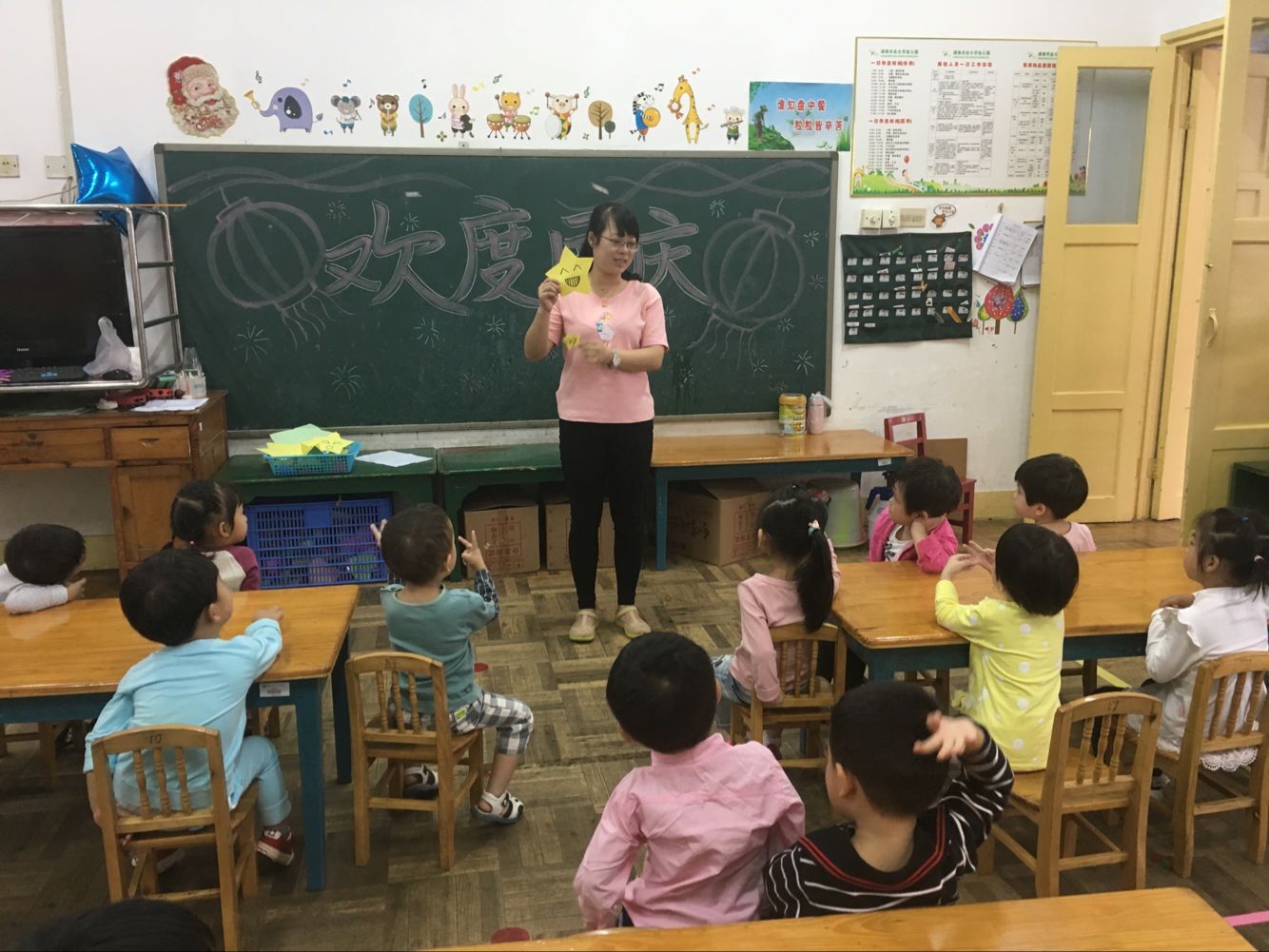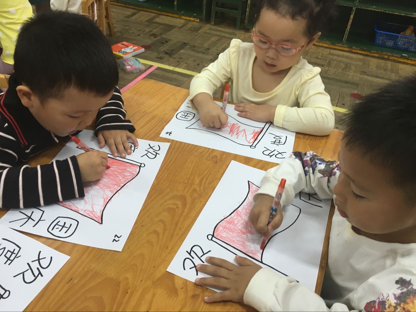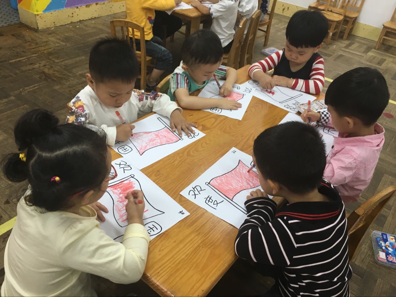 十月一日是我们伟大祖国的生日,为了让孩子们从小热爱祖国。九月二十八号这天上午,湖南农业大学幼儿园小一班的孩子们在老师的带领下,为祖国妈妈献上礼物。活动开始,老师和孩子们共同观看录像,感受人们欢度国庆的喜悦心情,从而使孩子们知道我国的国名及国庆节的由来,为自己是中国人而自豪。最后孩子们用绘画的形式表达对祖国妈妈的爱,在绘画过程中,孩子们很认真仔细地完成每一笔创作。