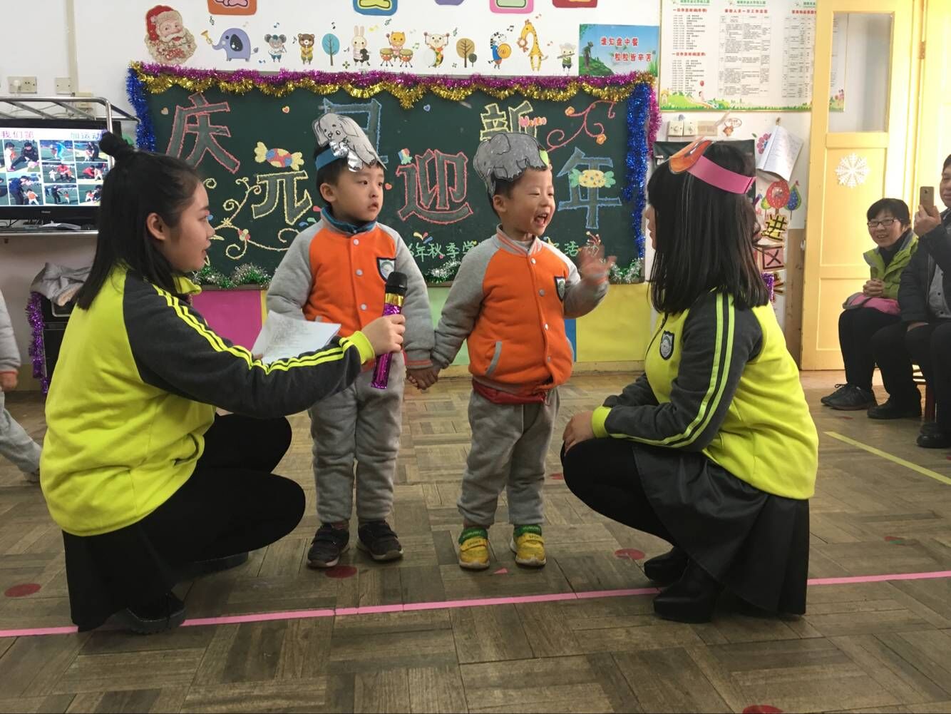 为了展示教育教学成果,给幼儿提供展示自己的舞台,使家长更加直观的了解幼儿的学习、生活情况。2016年12月30日上午,小一班召开了庆元旦迎新年汇报活动,针对本学期班级情况和家长们进行了一次近距离的交流。