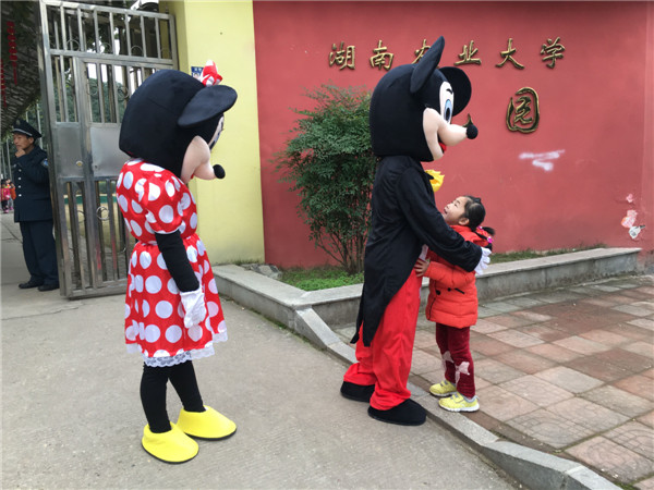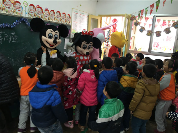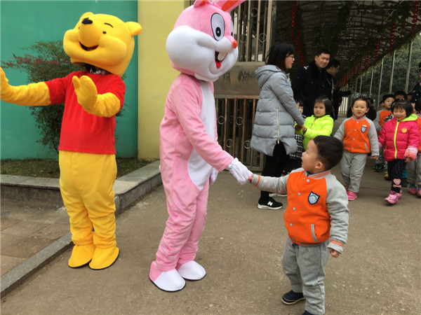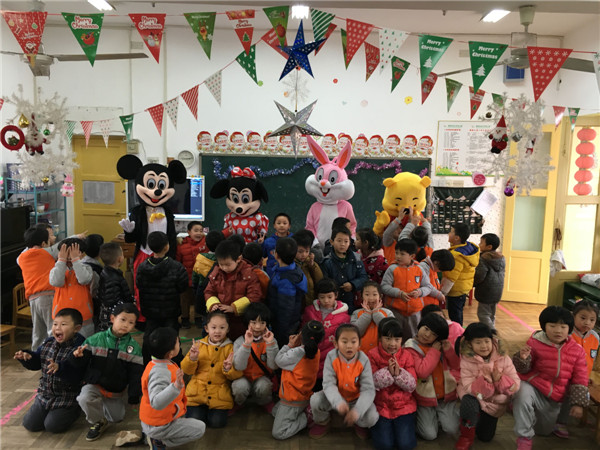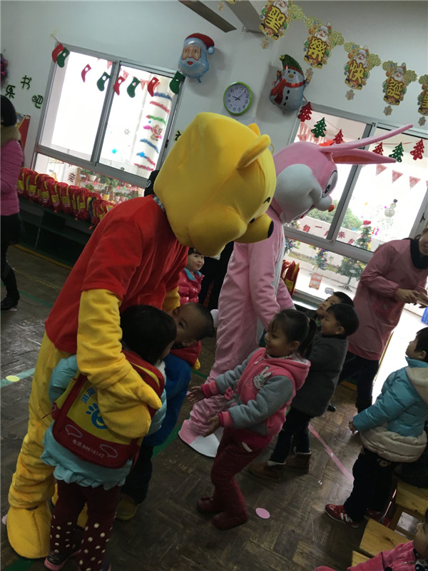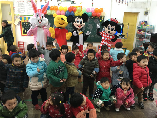 12月31日,幼儿园里张灯结彩,人声鼎沸,喜气洋洋。早上幼儿园请来了迪斯尼的小动物们和孩子们一同迎接新年的到来,孩子们看到自己喜欢的迪斯尼小动物都上前跟他们握握手,抱一抱,兴奋不已!