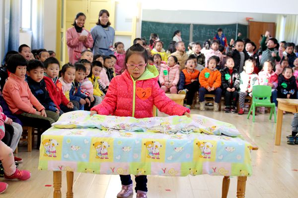活动中,有的小朋友身手不凡,动作灵活迅速,很快就完成了任务;有的小朋友遇到了困难,急得团团转,引得旁边小朋友连喊“加油”;有的小朋友虽然动作慢一点点,但是能坚持完成比赛,坚持不放弃;有的小朋友速度和整齐度并行,效率很高……;在这次活动中,幼儿的积极性都非常高,都很愿意投入比赛中来,但幼儿叠被子是比较困难,主要是没有认真对整齐,影响了比赛速度。这与平时老师的教育培养和家长的配合是分不开的。参赛者积极投入比赛,观看者也是十分积极投入活动,孩子们都表现出了很高的热情,场上不时爆发出孩子们加油、呐喊声和欢笑声。