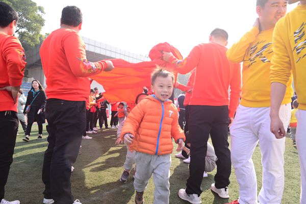 上午9:30,运动场上彩旗招展,热闹非凡,到处洋溢着活力、渗透着快乐与阳光!校国旗护卫队4名旗手擎国旗,伴随着《运动员进行曲》迈着坚实的步伐缓缓走向主席台,紧接着是我园4名幼儿手举园旗走向主席台。随后,伴随着《玩具兵进行曲》8个班的家长和小朋友们穿着整齐的服装,迈着整齐的步伐,精神抖擞地走向主席台,他们矫健的身姿,嘹亮的口号赢得了阵阵的掌声。庄严的升旗仪式后,校工会副主席兼子教中心主任黄大金发表了热情洋溢的讲话,并预祝运动会圆满成功。