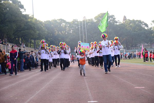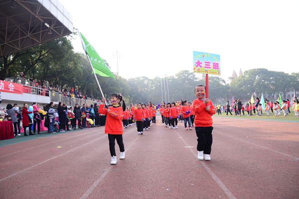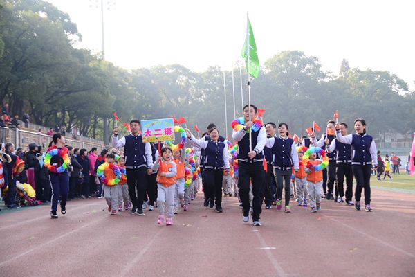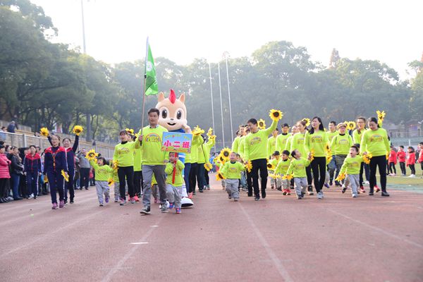 上午9:30,运动场上彩旗招展,热闹非凡,到处洋溢着活力、渗透着快乐与阳光!校国旗护卫队4名旗手擎国旗,伴随着《运动员进行曲》迈着坚实的步伐缓缓走向主席台,紧接着是我园4名幼儿手举园旗走向主席台。随后,伴随着《玩具兵进行曲》8个班的家长和小朋友们穿着整齐的服装,迈着整齐的步伐,精神抖擞地走向主席台,他们矫健的身姿,嘹亮的口号赢得了阵阵的掌声。庄严的升旗仪式后,校工会副主席兼子教中心主任黄大金发表了热情洋溢的讲话,并预祝运动会圆满成功。