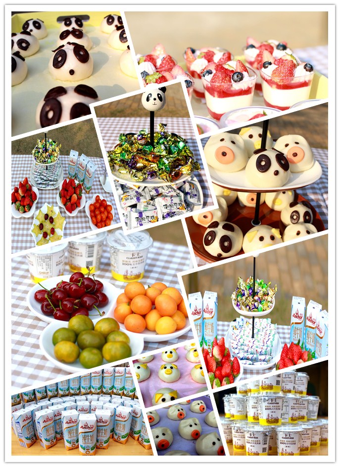 伴随着悠扬的音乐,孩子们在老师的引导下,来到了幼儿园草坪。幼儿园精心为孩子们准备了火龙果、樱桃、杨桃、哈密瓜、石榴……猪猪包、熊仔包、奶黄包、肉包、黄金糕……意大利面、披萨、蛋挞……牛肉、酸枣糕、牛奶、酸奶……蔓越莓甜甜圈、熊仔蛋糕、榴莲千层、牛奶冻……二十几款丰富的食物。
