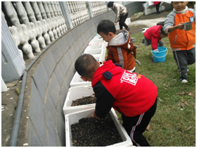 为了让幼儿在幼儿园体验田园生活,观察了解种植的每一个步骤,感知植物的生长过程,同时也让幼儿体验劳动收获的快乐,在园内为中大小班都开辟了种植园。