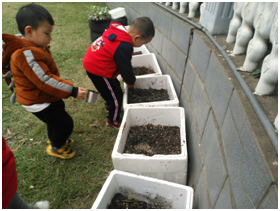 为了让幼儿在幼儿园体验田园生活,观察了解种植的每一个步骤,感知植物的生长过程,同时也让幼儿体验劳动收获的快乐,在园内为中大小班都开辟了种植园。