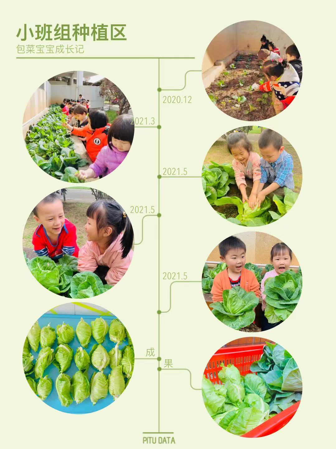 自从播下了菜苗,孩子们就像种下了一个希望,每周户外活动时,老师都会带领孩子们到种植园看看菜苗长大了吗。给干枯的苗儿浇浇水,拔掉地里的野草。直至今日的丰收,孩子们亲自下地拔菜,再回家洗菜、做成成品进入小朋友的口中,孩子们真真切切的体会到了辛勤播种,快乐收获的滋味。