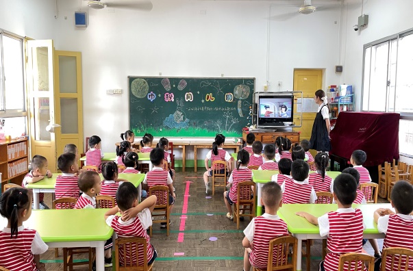 在观看中秋赏月背后的故事时,孩子们一个个探着求索的小脑袋认真聆听关于中秋由来的神话故事,了解了中秋的传统文化。