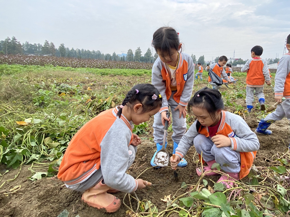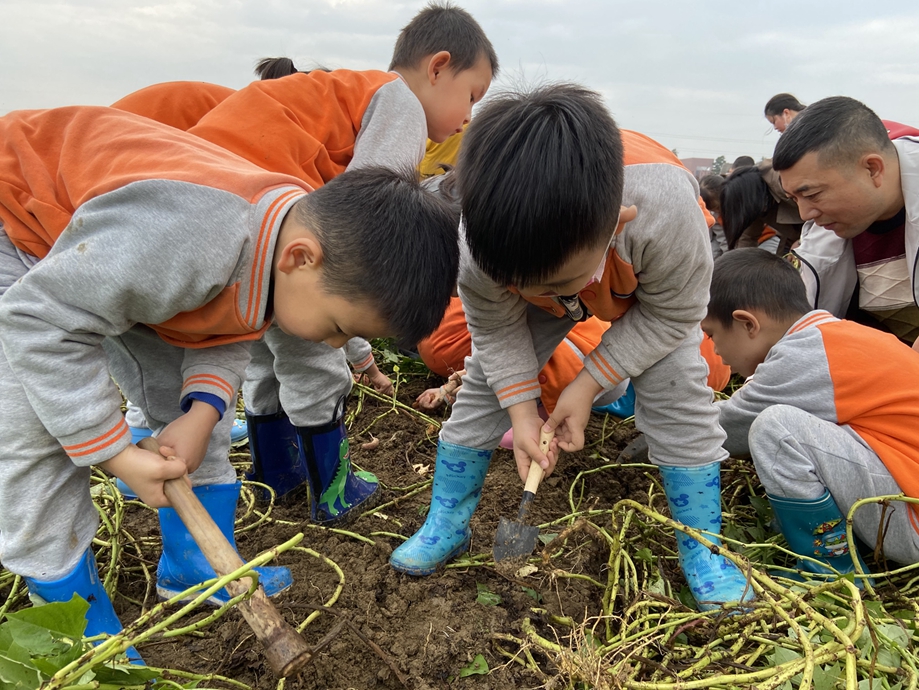 秋季是个丰收的季节,近日,在幼儿园“农字品牌”课程的引领下,大班年级组幼儿及老师一起走进农大耘园基地,开展红薯秋收实践活动,让幼儿在田园活动中探索、体验和交往,在实践中获得情感、知识、能力。