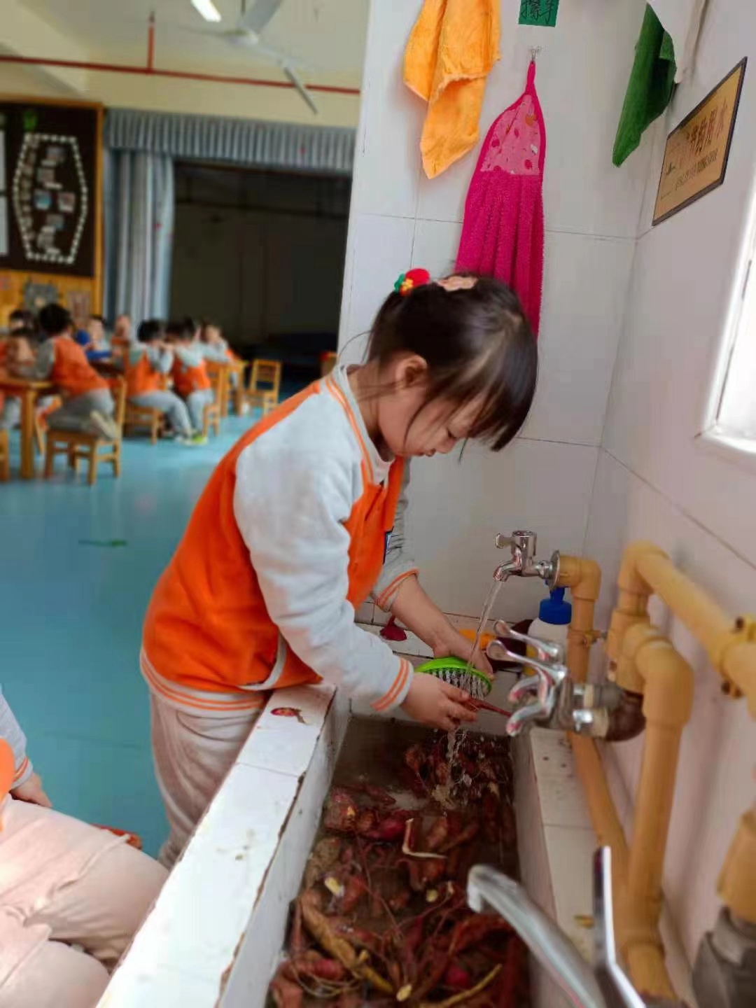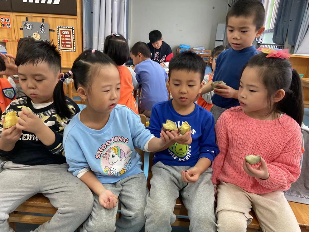 孩子们还将收获来的红薯洗干净送到厨房,请厨师加工烹饪,与小伙伴们共同品尝。生活即教育,环境即课程。《3-6岁儿童学习与发展指南》教育建议中指出:支持幼儿接触自然、生活事物和现象中积累有益的直接经验和感性认识。我们应该多鼓励孩子与大自然、大社会亲密接触,感受大自然奇妙的变化,倾听它美妙的声音,欣赏它美的景象。